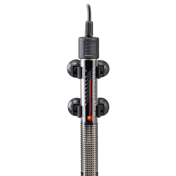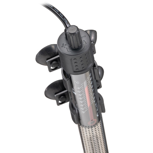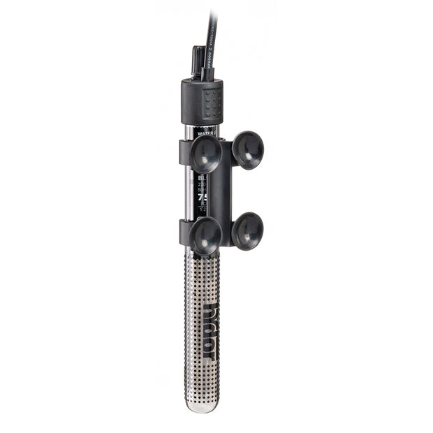 Fully submersible, Bluclima is an internal heater for marine and freshwater aquariums also suitable for glass turtle tanks. Precise and reliable, it guarantees even temperature inside the tank and is easy to position thanks to the suitable clips with suction cups included. Bluclima heater has a glass tube of 2 mm thickness especially designed to ensure high heat resistance. In order to regulate the thermostat at the desired temperature, you just have to turn the control knob until the pointer on the graduated scale corresponds to the chosen value, with no need for removing the heater from the filter.