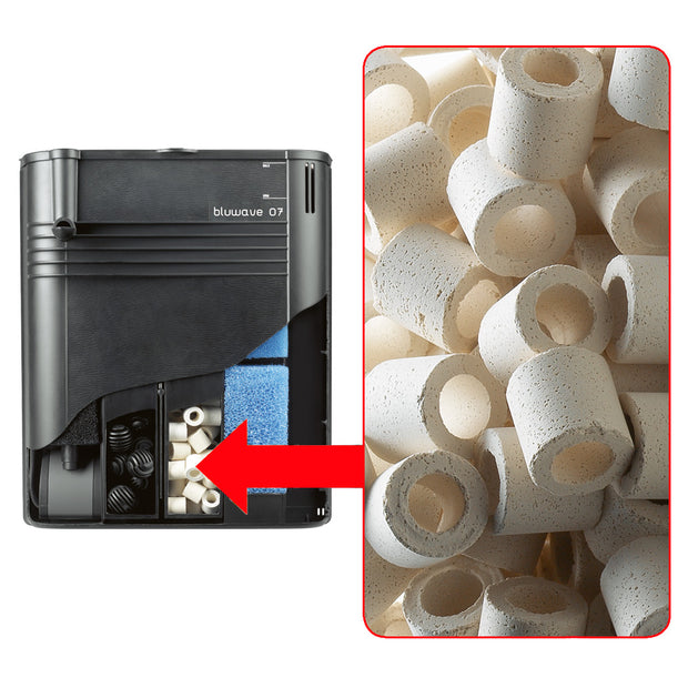 Blurings by Hydor are high micro-porosity ceramic rings which ensures an efficient biological filtering: in effect, they promote the correct filtering bacteria to develop and eliminate the polluting substances.
