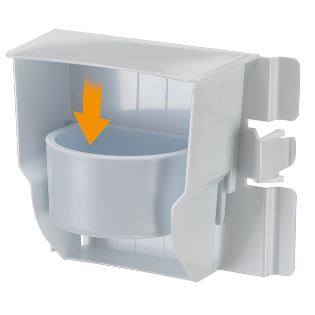 The main feature of all the feeders is that they are removable and all have a swivel function, making it easier to fill and clean them. To fill the feeders with food, just turn them outwards. For cleaning and maintenance, you can remove them from their casing without any danger of your bird escaping. In addition, the locking system triggers a safety lock, preventing your feathered friends from moving the feeder, thus also avoiding accidental leakages.