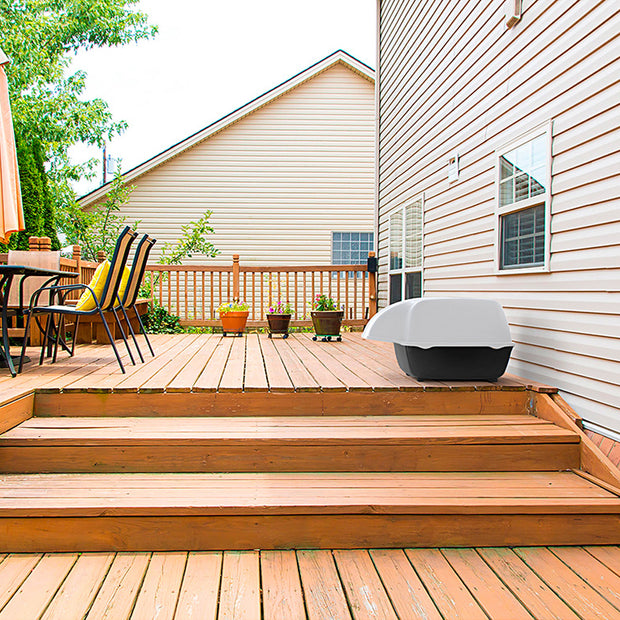 Ferplast’s latest model cat litter box, Cosmic Outdoor, has a really futuristic look about it! This version, specifically designed for use out of doors, is completely waterproof and can be left out in the open without any problem. It’s perfect for use on the balcony or in the garden. The cat toilet is made of hardy thermoplastic resin and has a special access to make entering simpler for the cat: a tunnel that leads it right inside! It’s the ideal solution for anyone who also has a small dog and wants to keep it out of the cat’s box. Because of its special shape, the cat can enter effortlessly, while the dog would find it much more difficult.