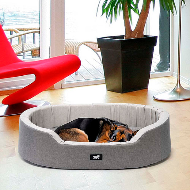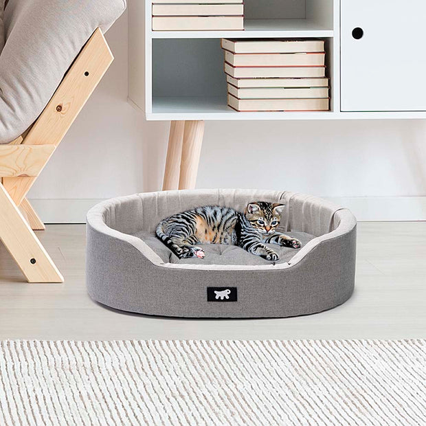 The Dandy cat and dog bed has high sides with soft internal padding and a removable cushion. On the front side, the entrance is lowered to allow easy access for your animal. The bedding is entirely covered in cotton, machine washable at low temperatures (30°).