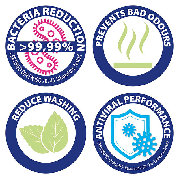 The Sanitized treatment contains a biocidal substance, silver chloride, whose antibacterial effect is long-lasting and does not fade with intensive use and washes. It inhibits and reduces the bacteria present on the product by 99.99%, as certified by strict laboratory tests, thus preventing unpleasant odours to develop.