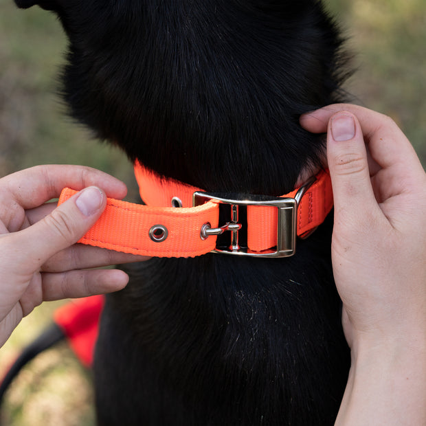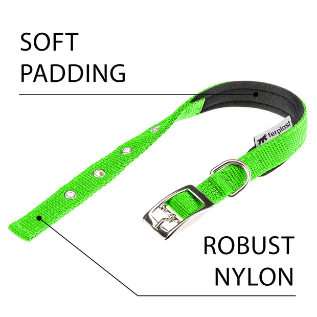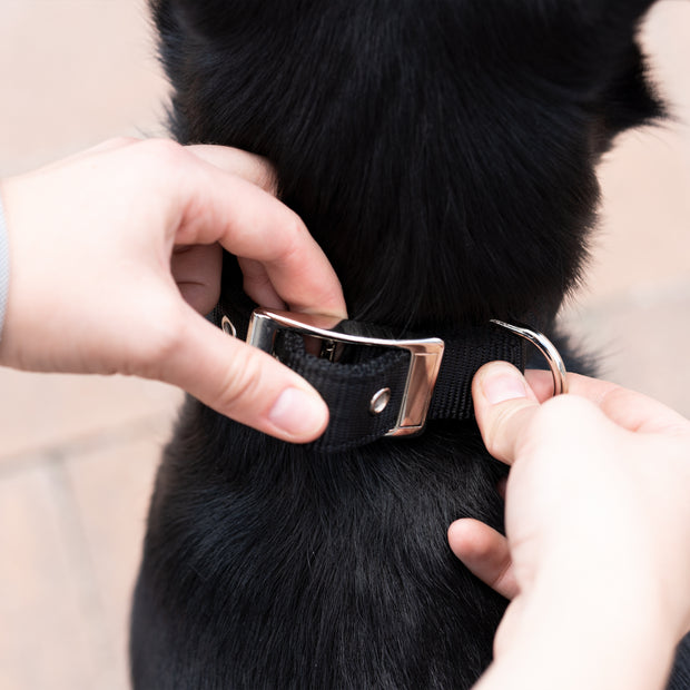 Very comfortable on your friend's neck thanks to the soft padding that covers the inside, Daytona C is a dog collar made of nylon, a material that makes it particularly resistant to stress from the animal. Adjustable through the four holes, it has a sturdy chromed metal buckle that ensures an effective and safe closure. To adapt to all dog sizes, Daytona C is available in various sizes, with a circumference ranging from a minimum of 27 to a maximum of 69 cm and a width of the tape ranging from 15 to 40 mm. This collar can be chosen in a wide range of colors.