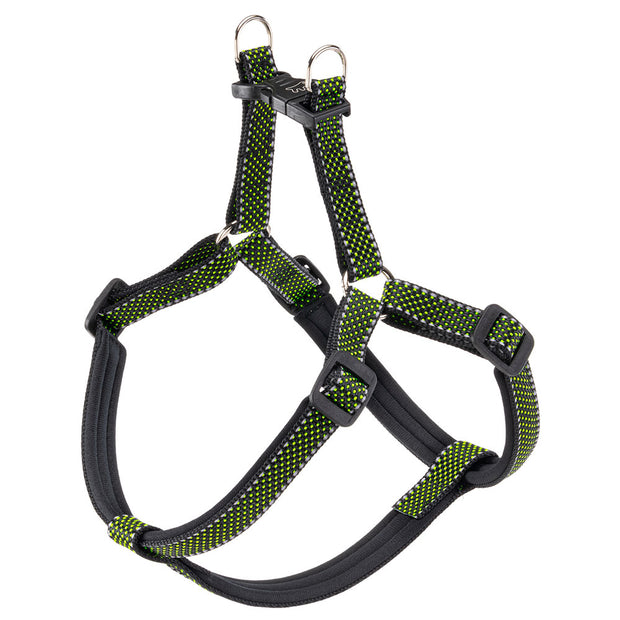 Equipped with a soft padding applied in the parts in contact with the animal's body, the Daytona Deluxe dog harness is designed to ensure maximum comfort for your pet, in sturdy and elegant fabric. It ensures a perfect fit: it is equipped with sliding buckles that allow you to easily adjust it in a few simple moves while the plastic snap clip guarantees a quick and reliable coupling. Finally, the reflective seams guarantee good visibility even in the evening or at night.