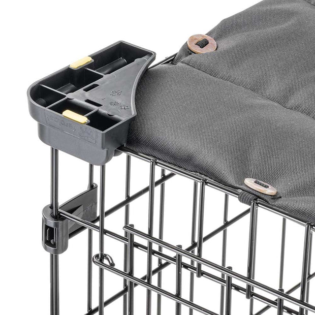Thinking about the growth of your puppy, the Doggy Hub includes a separator panel, which allows you to adapt the internal space as your puppy grows. For comfort, the dog box includes a double-sided cushion: on one side in cotton/polyester, on the other in waterproof, scratch-resistant and super-resistant technical fabric. Fastened with practical elastic laces with buttonhole, the cushion can be easily removed.