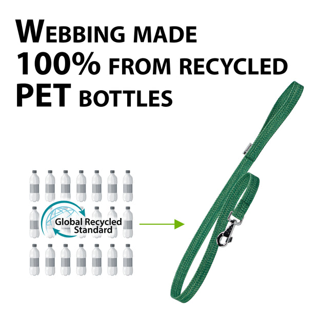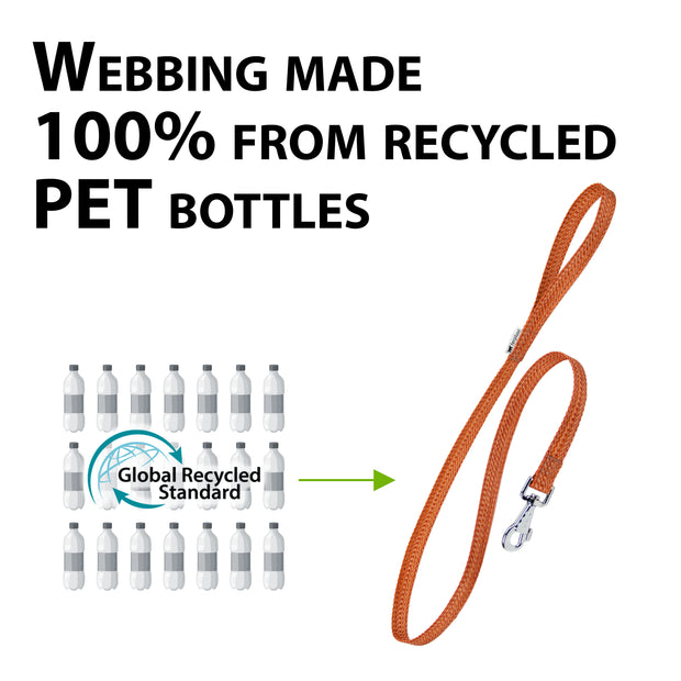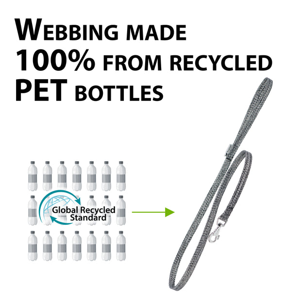 The leashes feature tape made from 100% recycled polyester from PET bottles and are certified by the Global Recycled Standard, a guarantee of safe, eco-friendly, high-quality materials. Each leash not only reduces plastic waste, but turns it into a strong and durable dog accessory, perfect for everyday use.