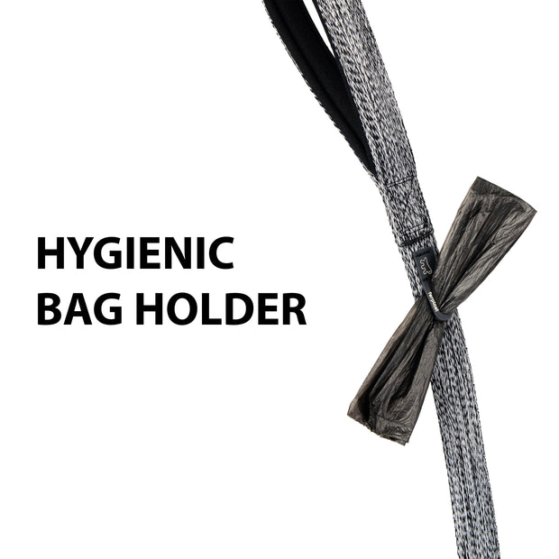 • Convenient hygiene bag holder integrated in the webbing, practical and easy to use during outings