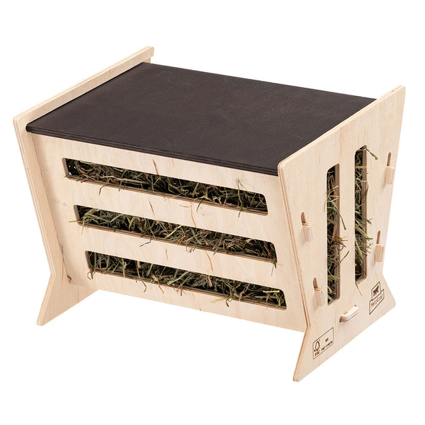 The feeder is essential for keeping the hay compact, the habitat clean and reducing waste.