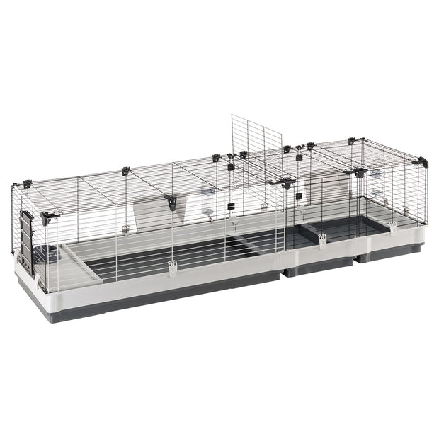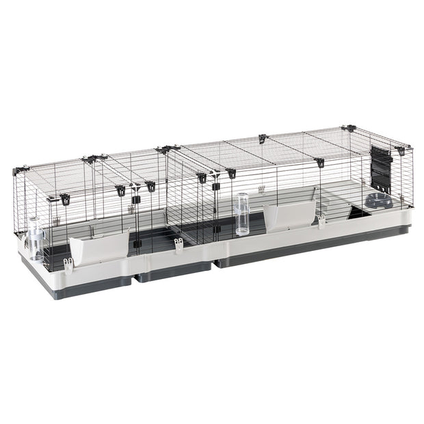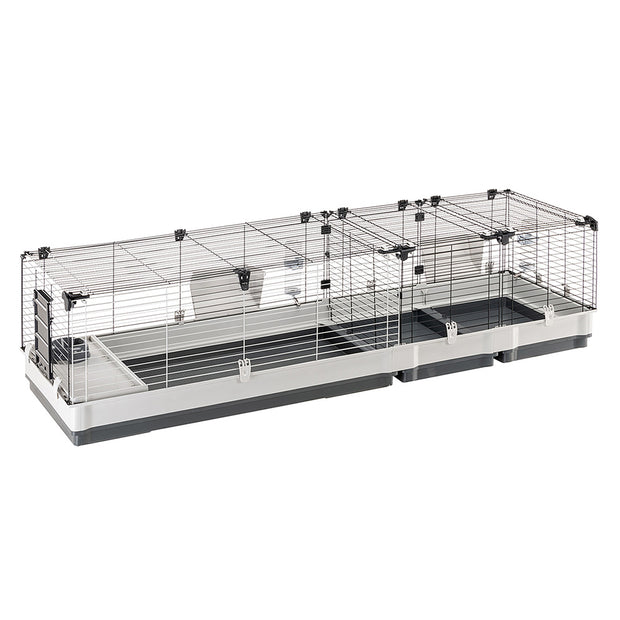 The perfect accommodation for cute bunnies! Krolik 200 is a comfy and spacious two-metre long habitat that will ensure your little pets a great deal of space for daily activities. Thanks to its generous dimensions - offers a living area of 1.30 square meters - it is also the perfect accommodation for several pets together, complete with extension of 40 cm in length separated from the main cage by a removable grid. This module is ideal for allowing bunnies to build their own nest in a secluded area, leaving them all the tranquility they need.