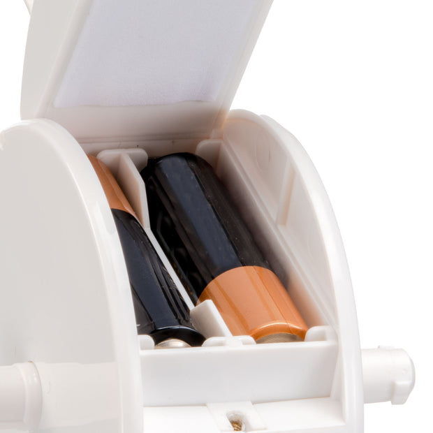 - Works with 2 AA batteries (not included)