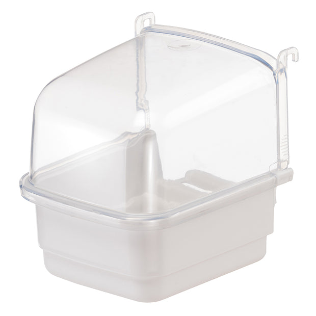 Rio 1 is a bath for canaries, small birds and exotic birds that allows your friends to bathe their feathers in complete tranquility. Made with non-toxic plastics, safe for the animal, it has a non-slip bottom and a practical perch for birds. It is also equipped with a transparent protection useful to prevent splashes from escaping. The bath adapts to various bird cages, can be easily assembled inside the habitat.