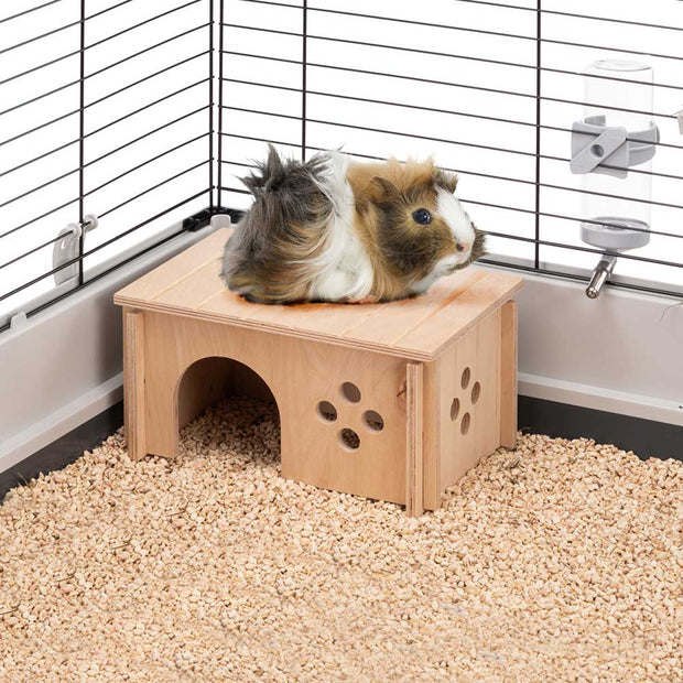 SIN 4645 is a wooden house that, due to their small sizes, are perfect for guinea pigs. Designed with a flat roof and front entrance, it has a nice shape and it is decorated with graceful holes that also facilitate air circulation. SIN 4645, which is part of the SIN range for small animals, is built with respect for the environment, made using FSC™ certified wood, that is sourced from forests that are managed correctly and responsibly according to strict environmental, social and economic standards and other controlled sources.