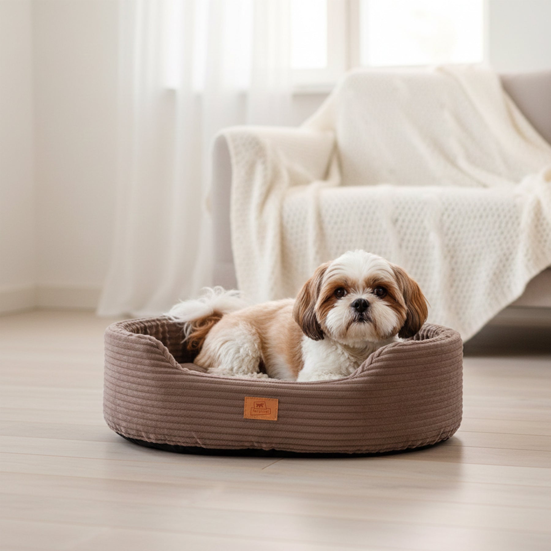 The Corduroy ribbed velvet cover gives the bed a refined, contemporary look, turning it into an elegant indoor pet bed that blends seamlessly with home furnishings. The removable inner cushion, soft and well padded, enhances comfort and allows for easy cleaning and maintenance.
