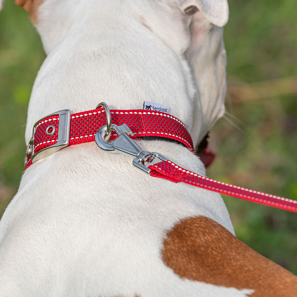 The Daytona Deluxe dog collar is made of sturdy and elegant fabric, featuring a four-hole adjustment system and a refined metal buckle. Thanks to the soft padding of the internal webbing, it is particularly comfortable in contact with your friend's neck. In addition, it is equipped with reflective seams that allow it to be visible even in low light conditions, and therefore ideal for evening walks with Fido.