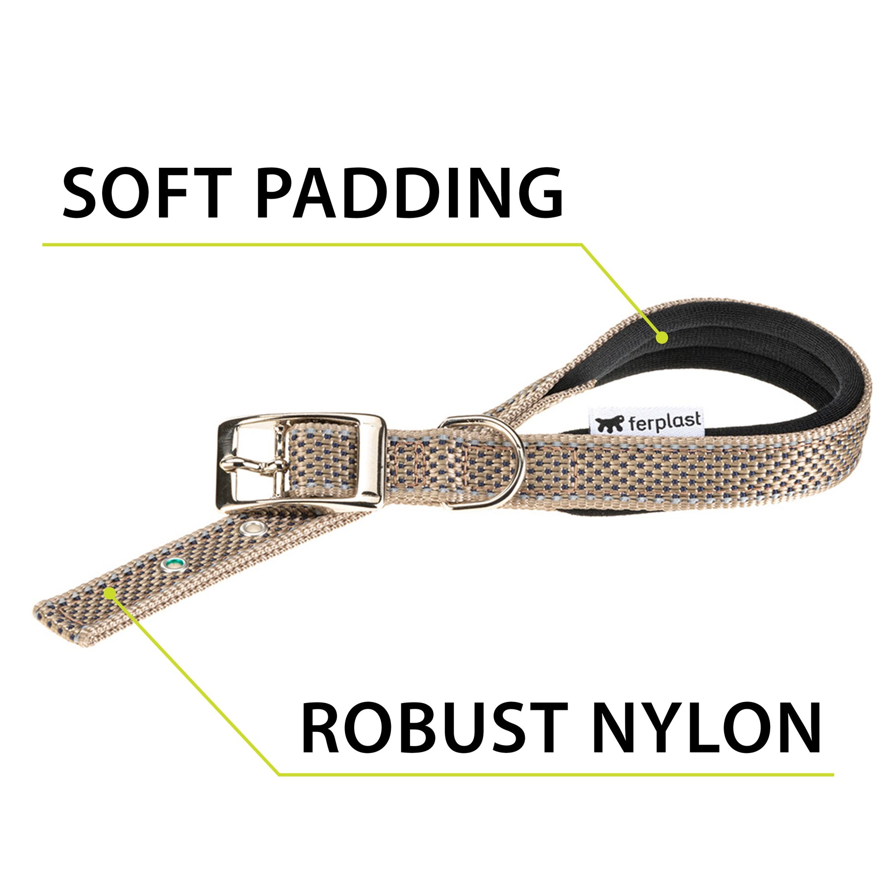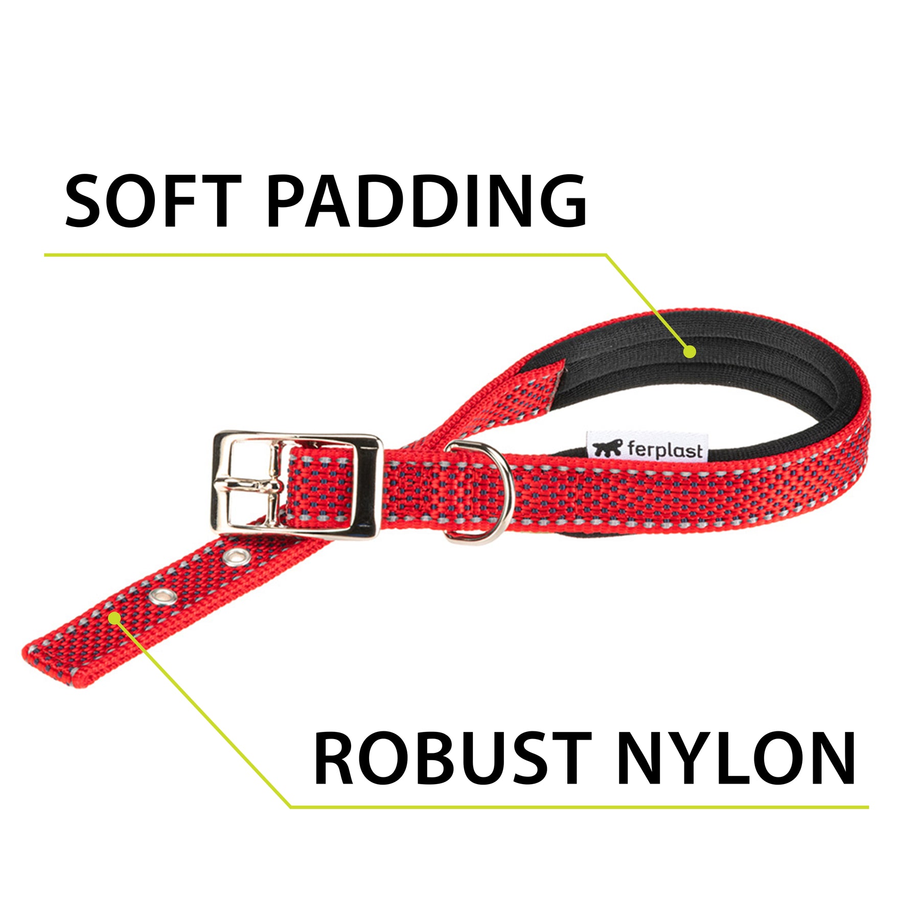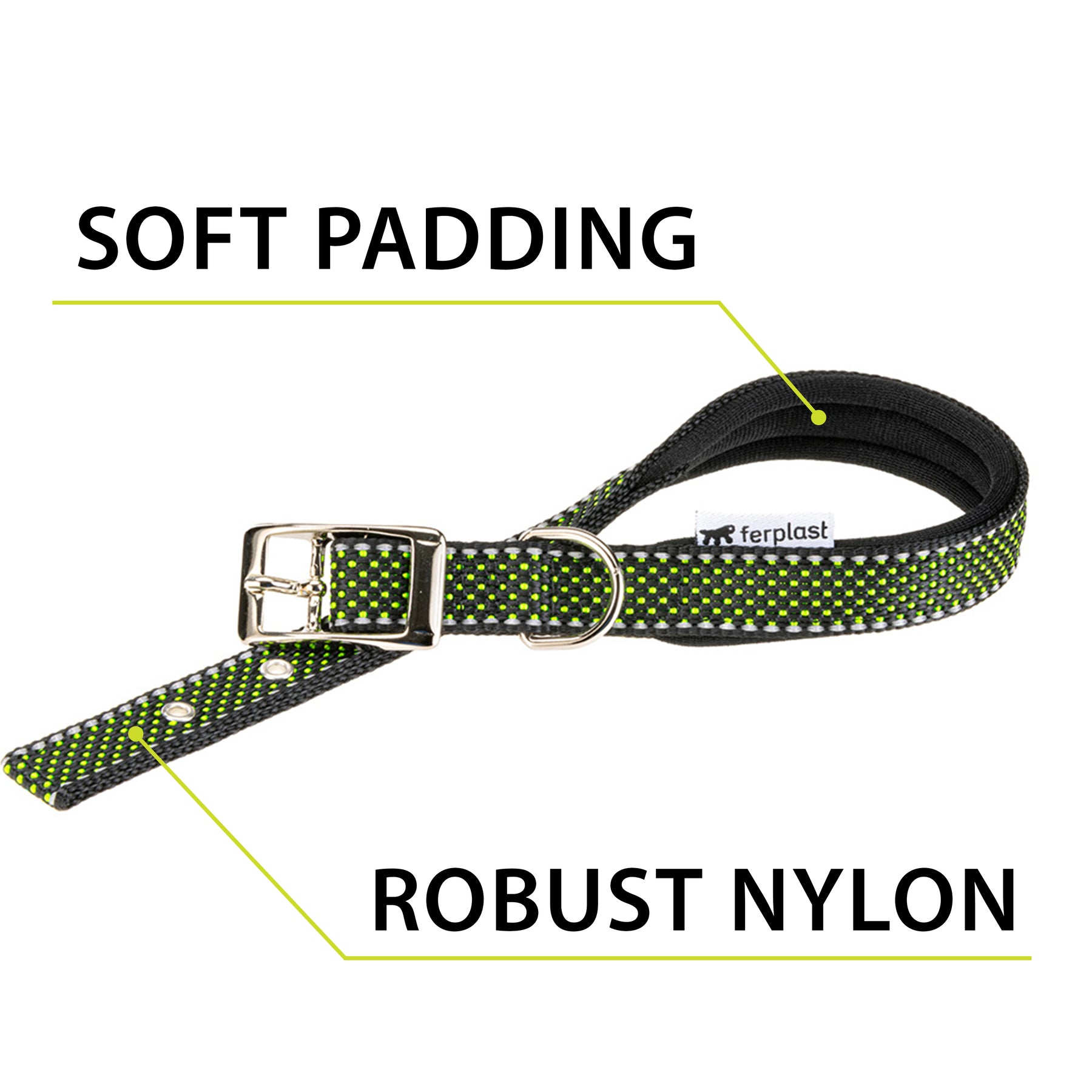 Reflective dog collar with soft padding and metal buckle