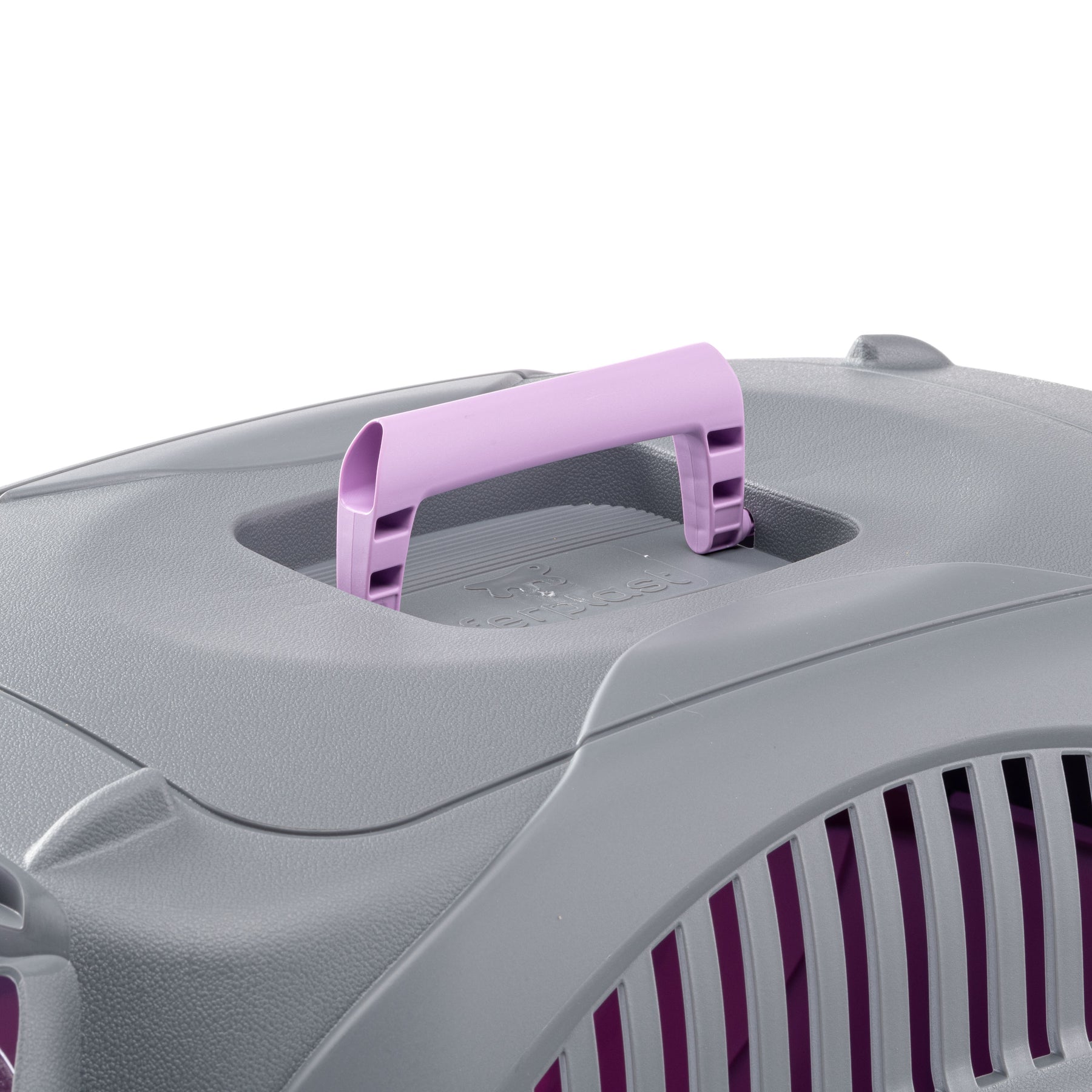 The rounded shape of the carrier has been designed to guarantee maximum comfort for the dog or cat during transport, while the door equipped with closing clips and the sturdy hooks on the sides ensure that the animal remains safe inside. The comfortable handle facilitates the transport of the carrier, which can be easily assembled and disassembled to allow simple and quick cleaning.