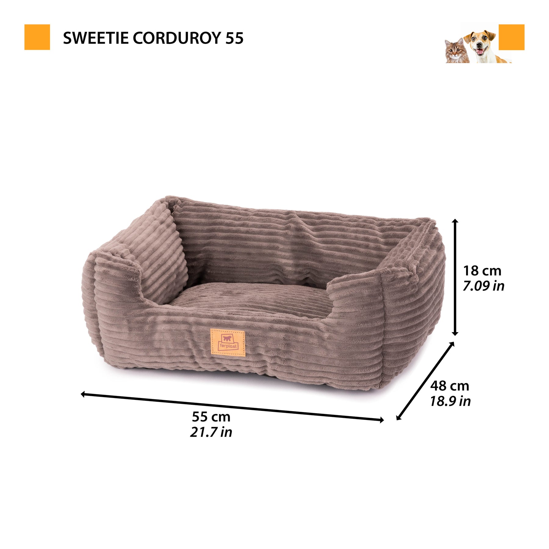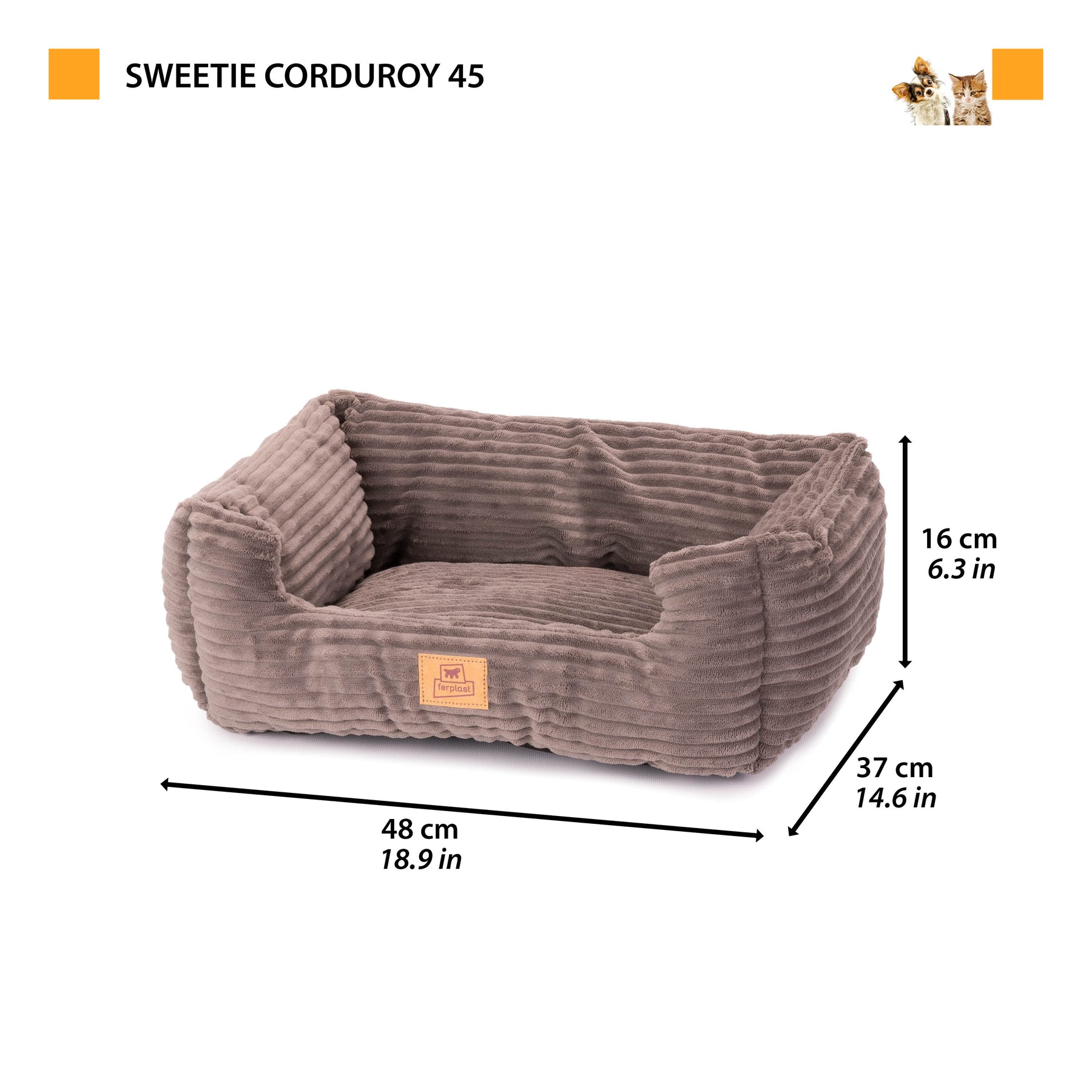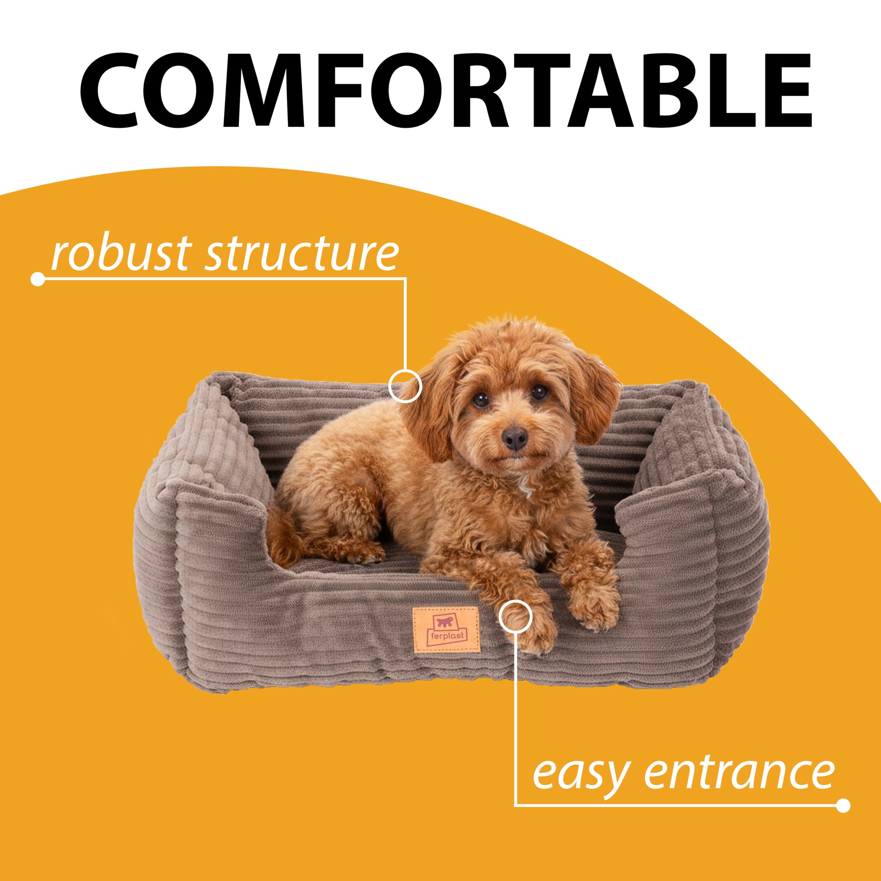 The padded sides create an enveloping space that promotes relaxation and well-being, while the Corduroy ribbed velvet cover combines softness and elegance, turning the bed into a stylish indoor pet bed. The soft padding makes Sweetie Corduroy suitable even for more sensitive pets.