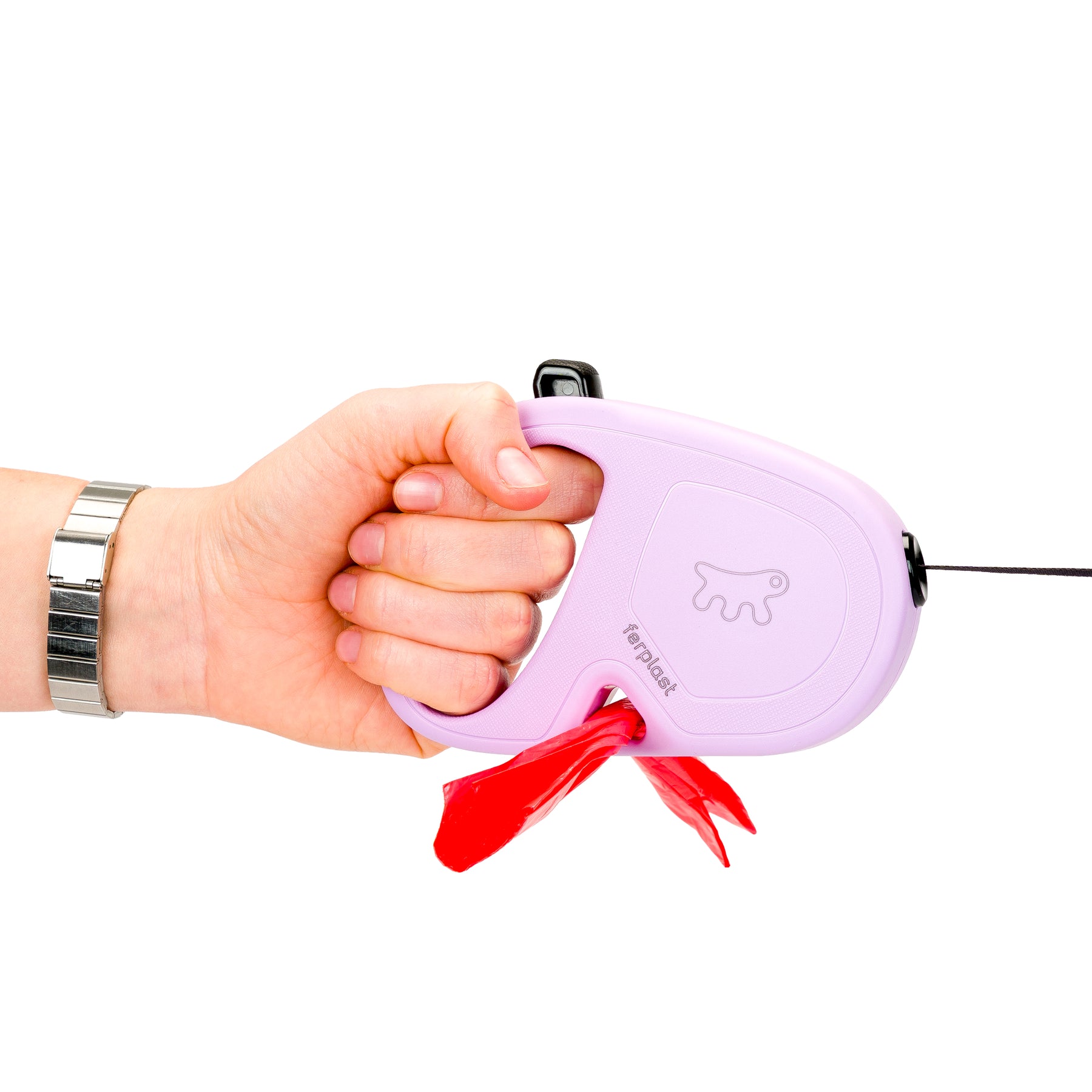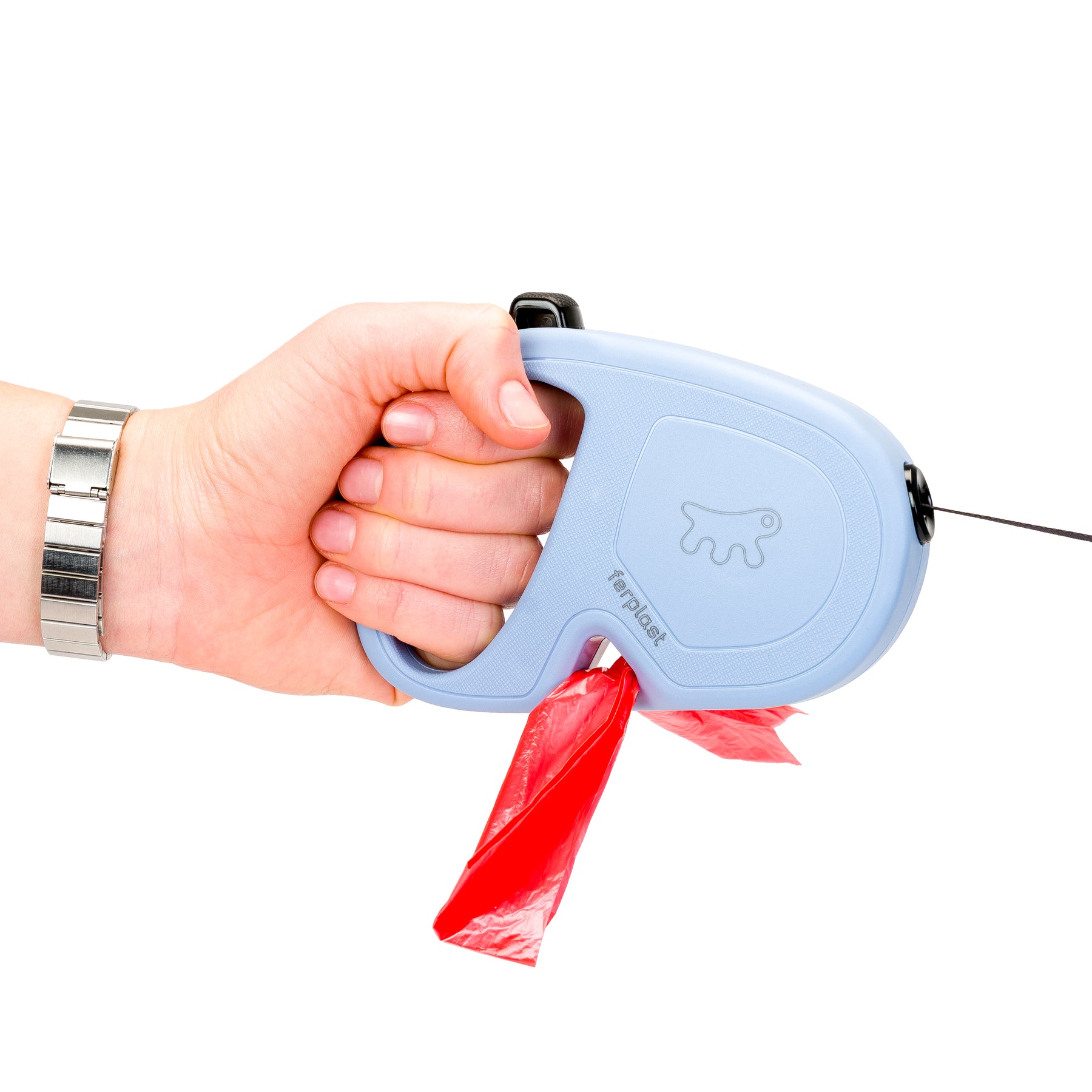 The Flippy One extendable leash is compact and lightweight, with an ergonomic and comfortable handle. The practical hole for hooking the hygienic bag holder does not protrude and is integrated into the shell, so as not to cause any discomfort and allowing you to comfortably carry essential accessories for the walk.