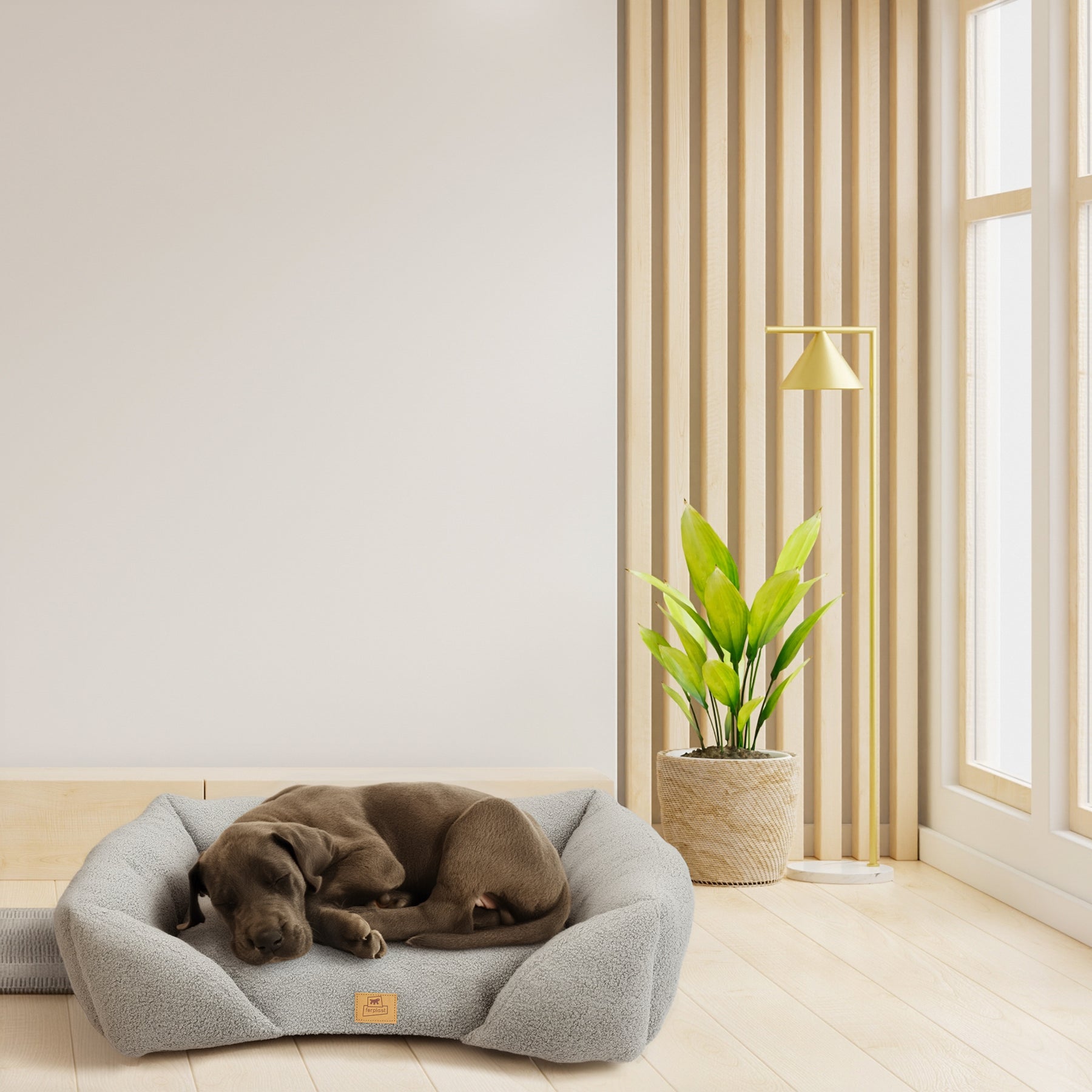 Practical and functional, the Pamper Bouclé pet sofa can be hand-washed at 30°C, ensuring hygiene and convenience at all times. It is available in a variety of refined colors that easily match any home décor.