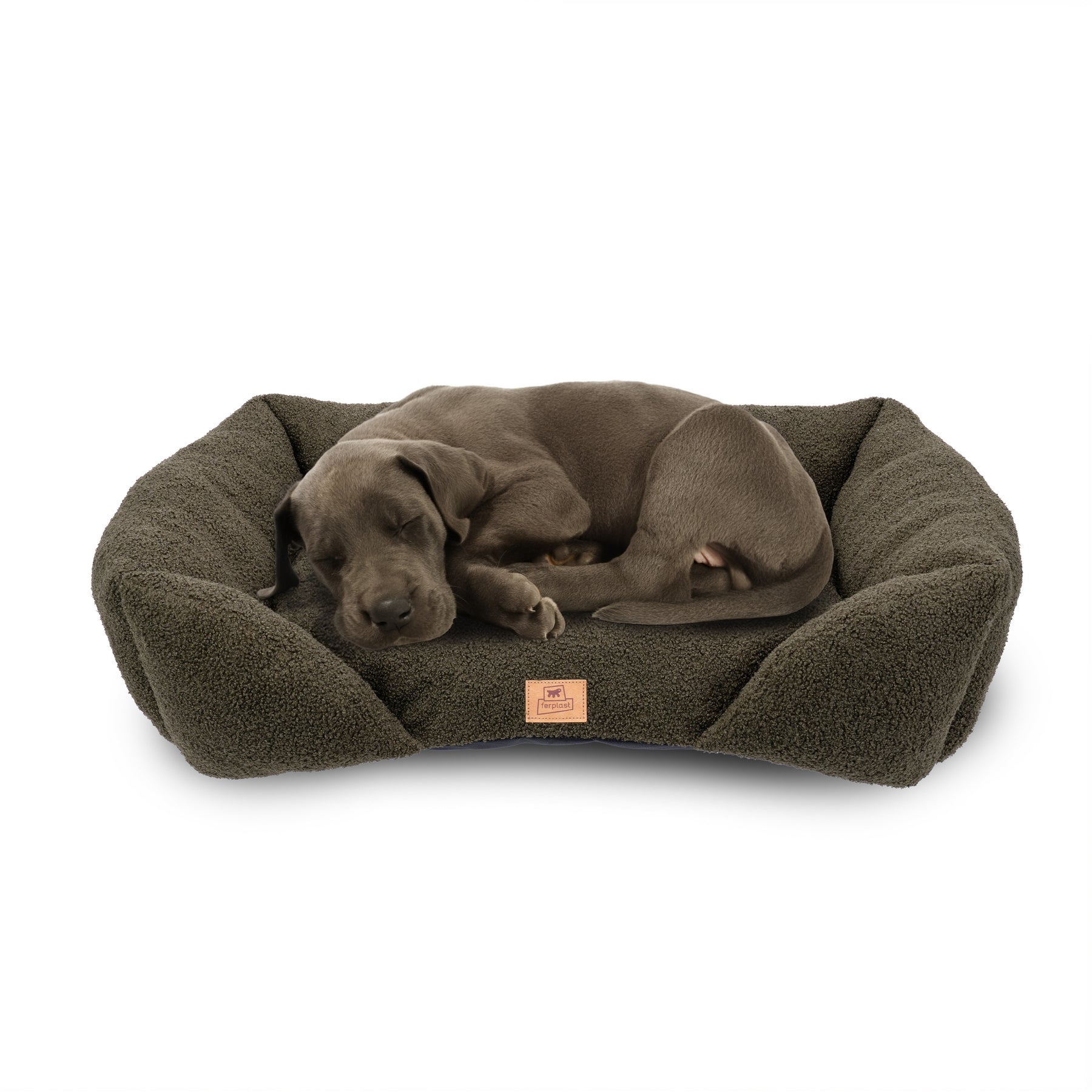 Its rectangular shape with a lowered front side makes it easy for your pet to enter and exit, while the raised sides provide support and a sense of security, turning the bed into a soft, protective retreat. The integrated padding ensures comfort and relaxation, wrapping your four-legged friend in a gentle cuddle.