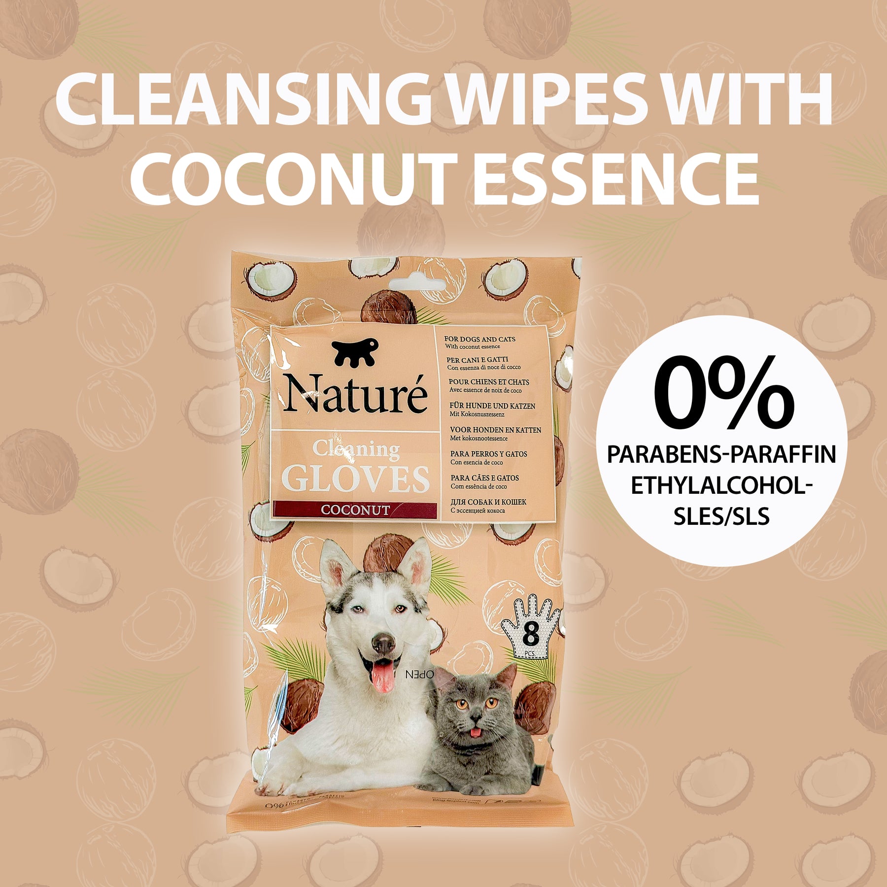 Naturé Coconut cleansing gloves for dogs and cats are a practical and versatile solution for daily coat cleaning, ideal also when away from home. These cleansing wet gloves for dogs and cats allow you to take care of your pet’s hygiene in a simple, quick and gentle way, without the need for water or rinsing.