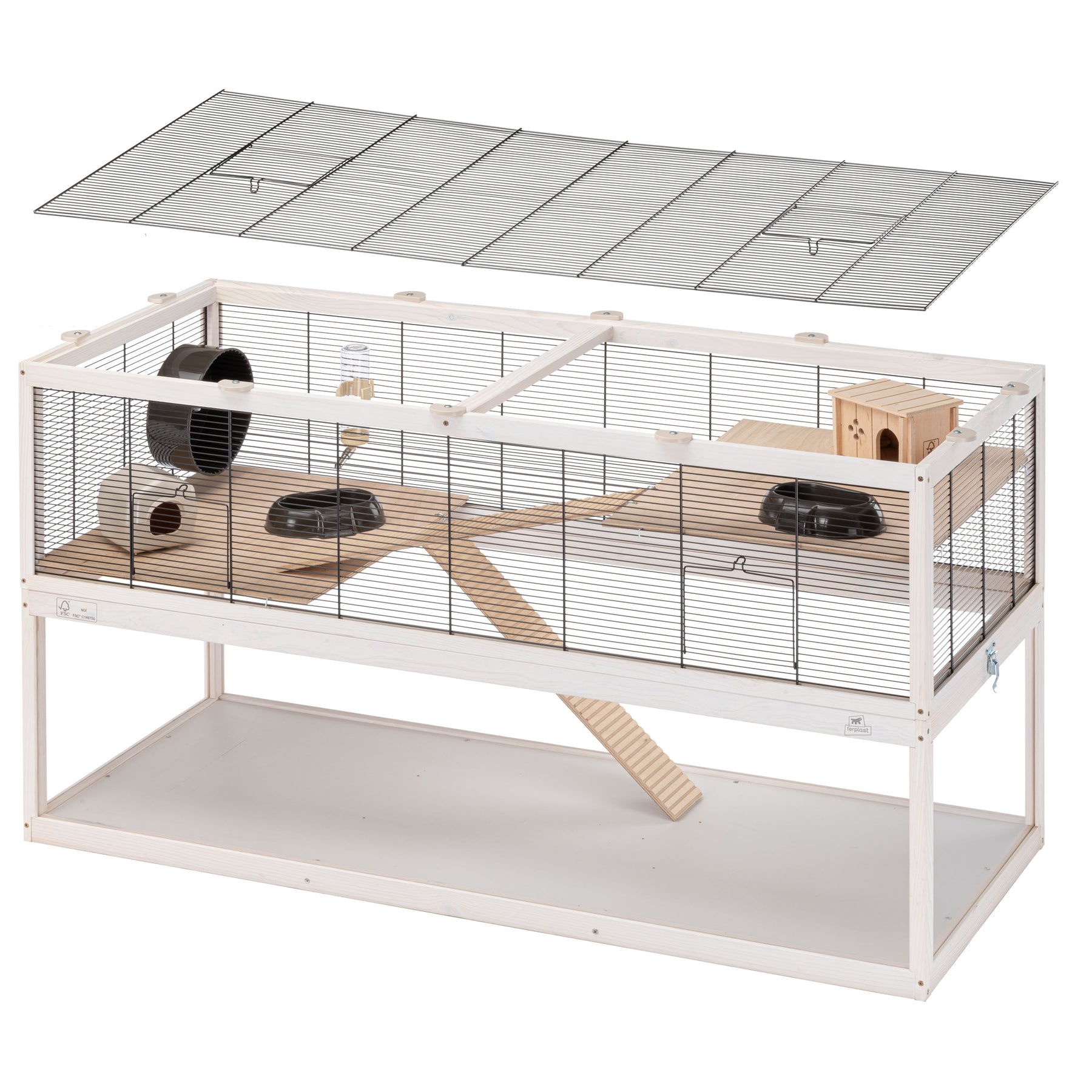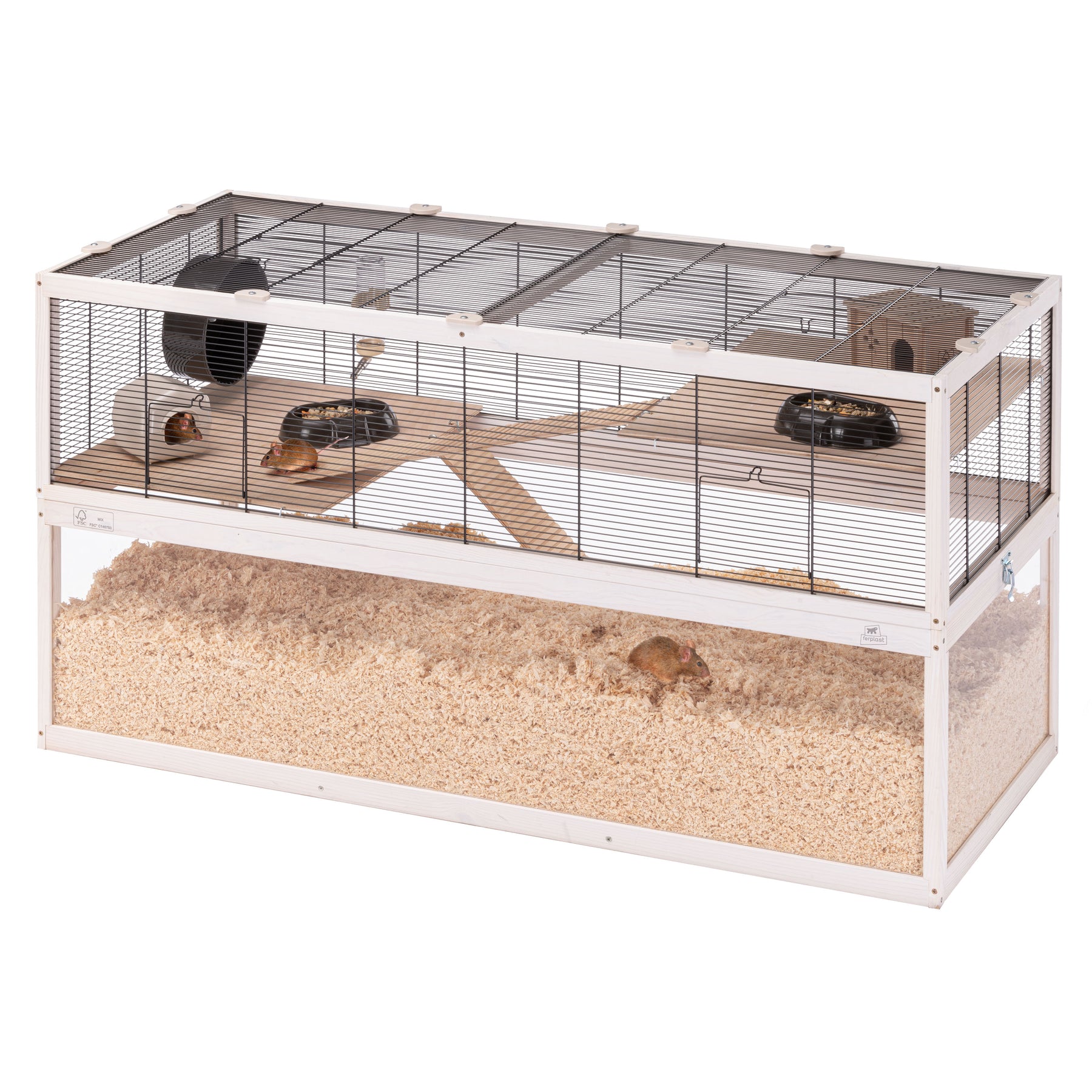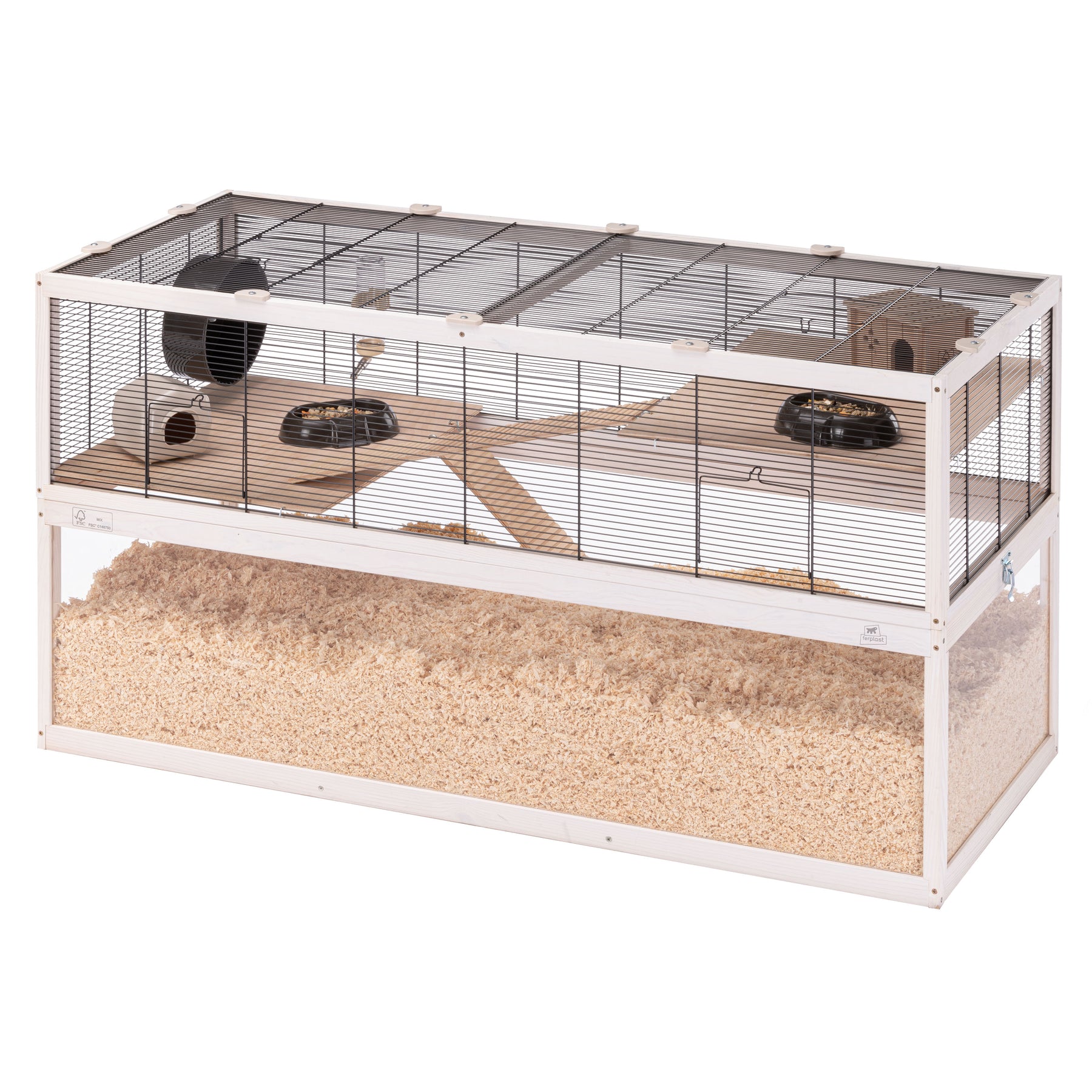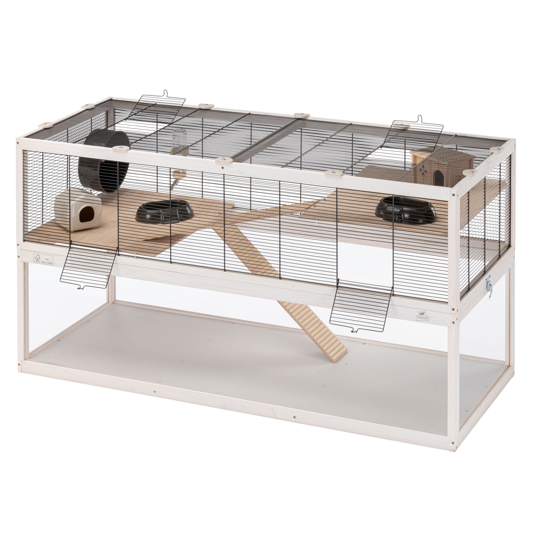 FSC™ certified wooden cage for hamsters and mice. Accessories included.