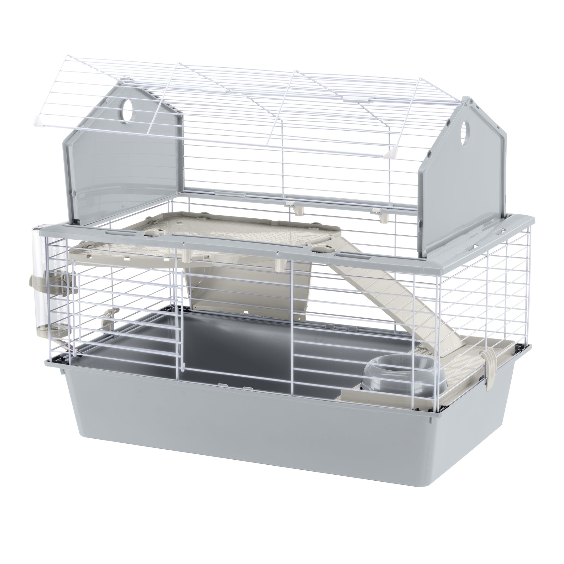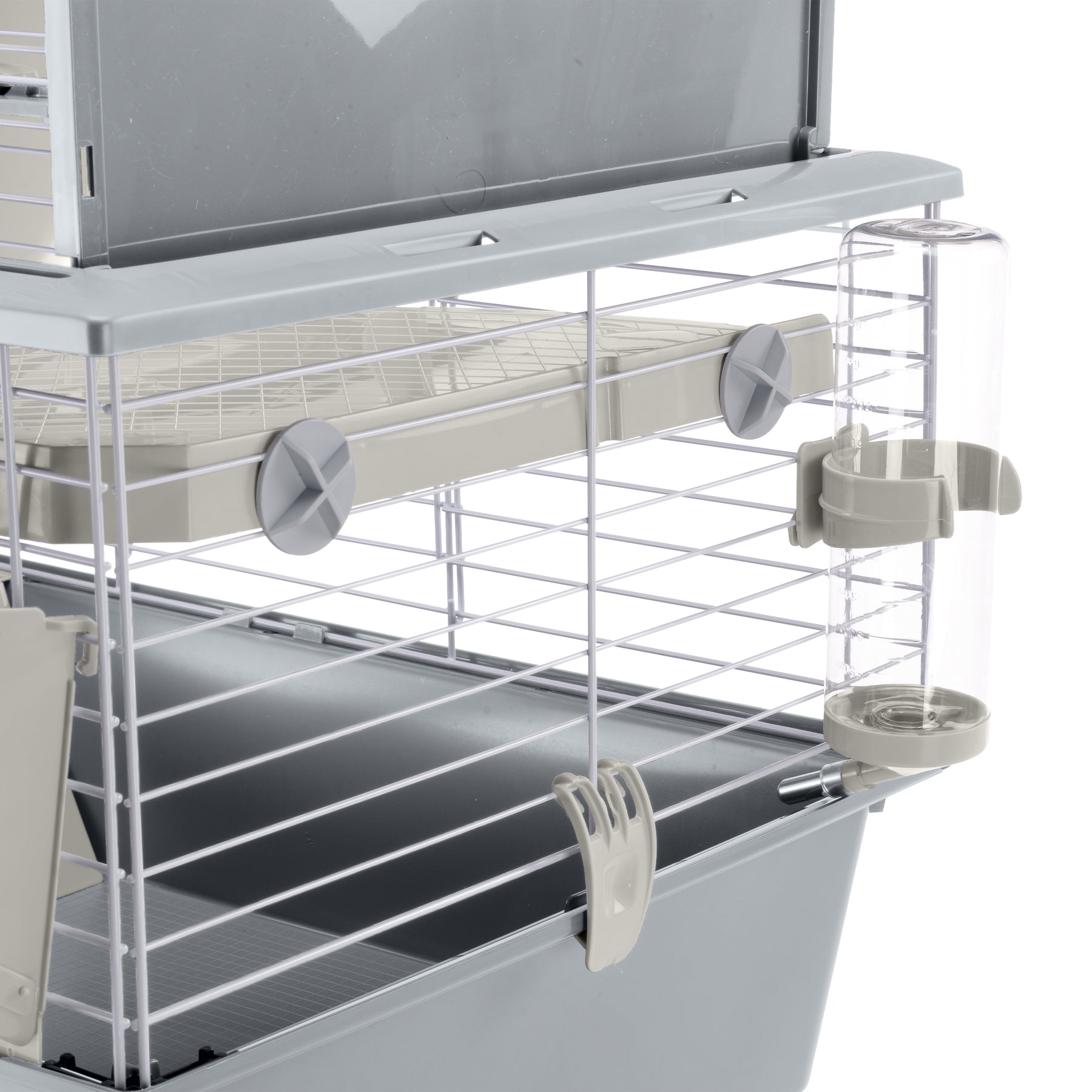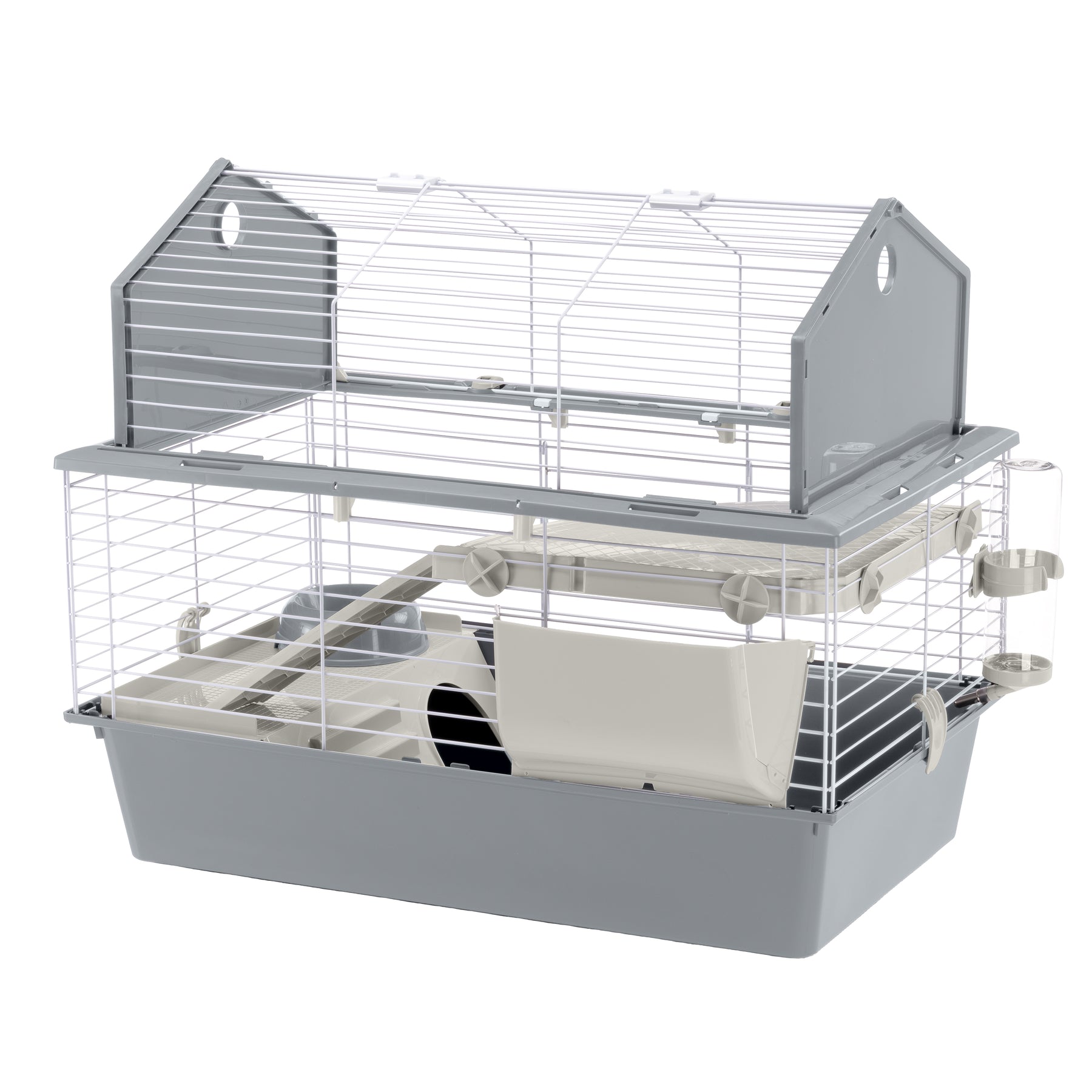 And this is not all: this cage is very easy to maintain, thanks to its fully opening roof that allows for complete access for everyday cleaning. For in-depth cleaning, the base and the top can be separated by releasing the fastener clips on the sides.