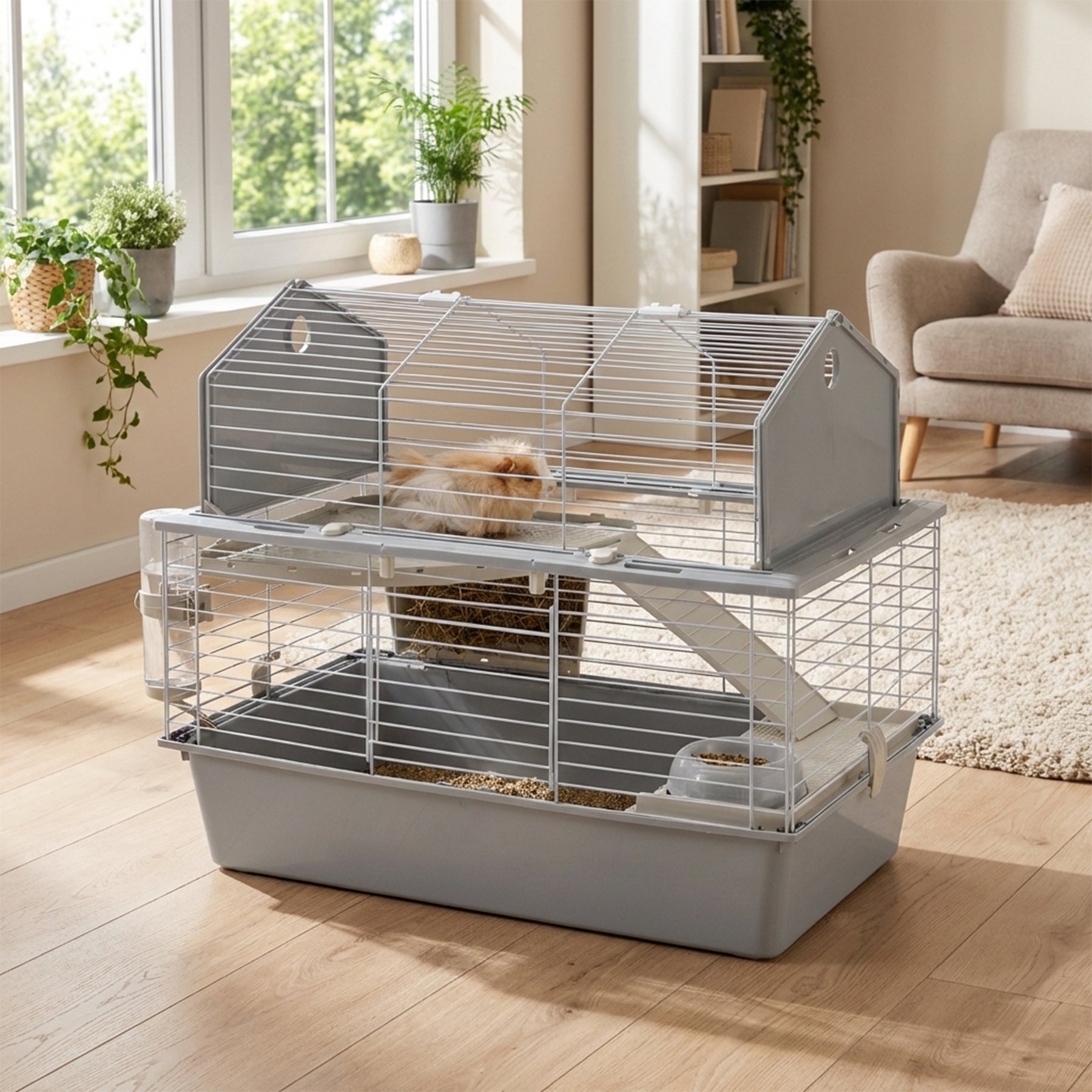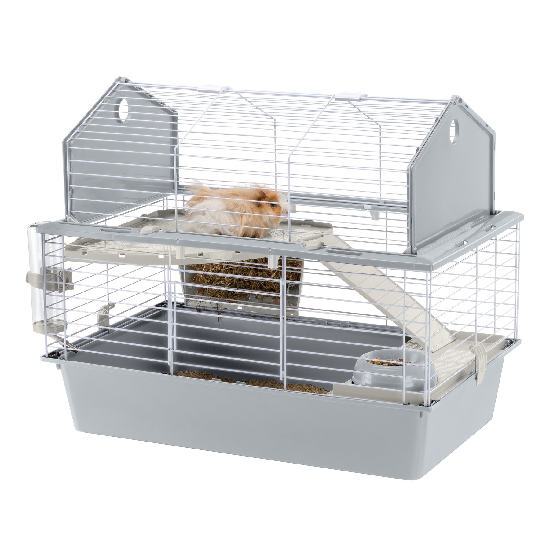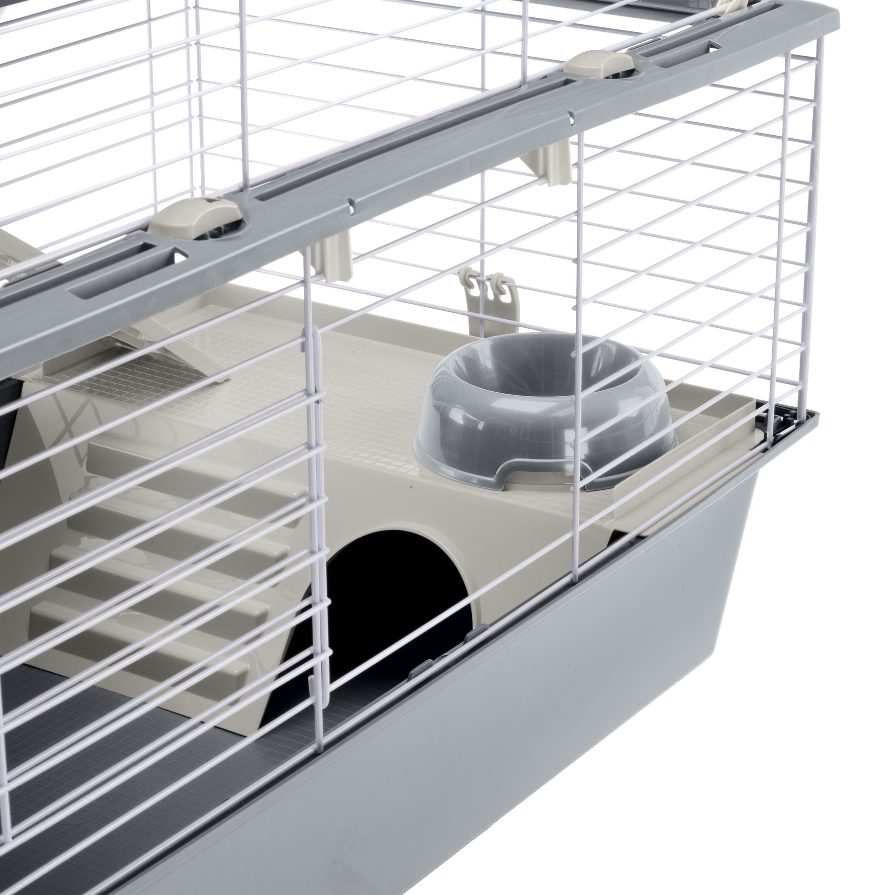 And this is not all: this cage is very easy to maintain, thanks to its fully opening roof that allows for complete access for everyday cleaning. For in-depth cleaning, the base and the top can be separated by releasing the fastener clips on the sides.