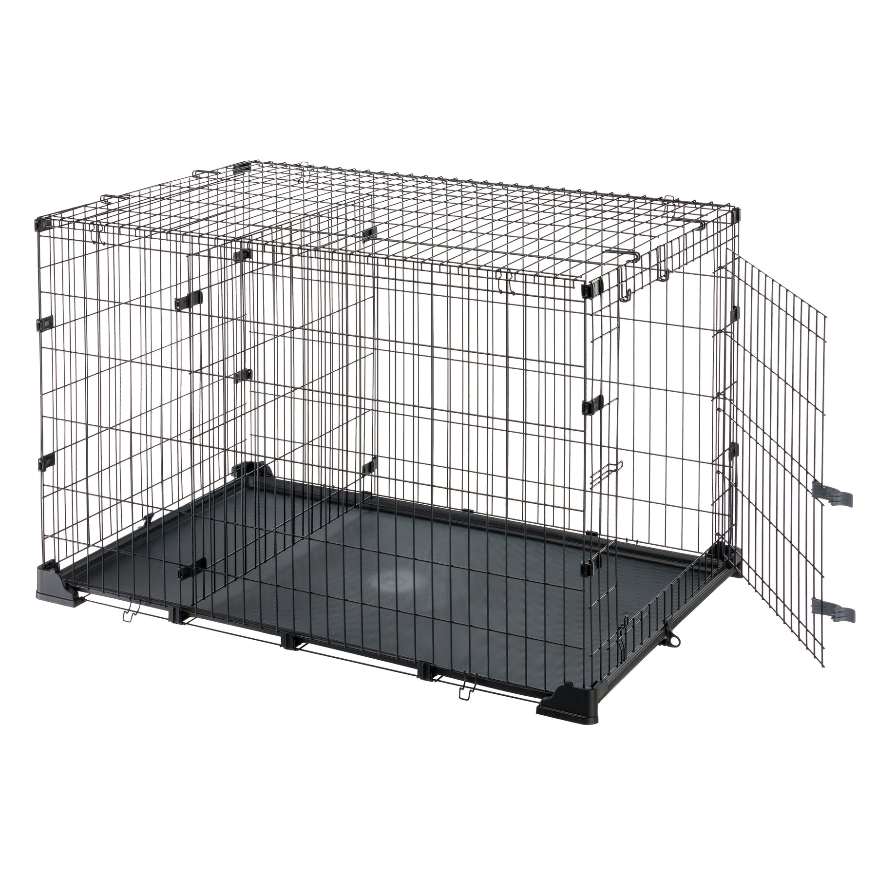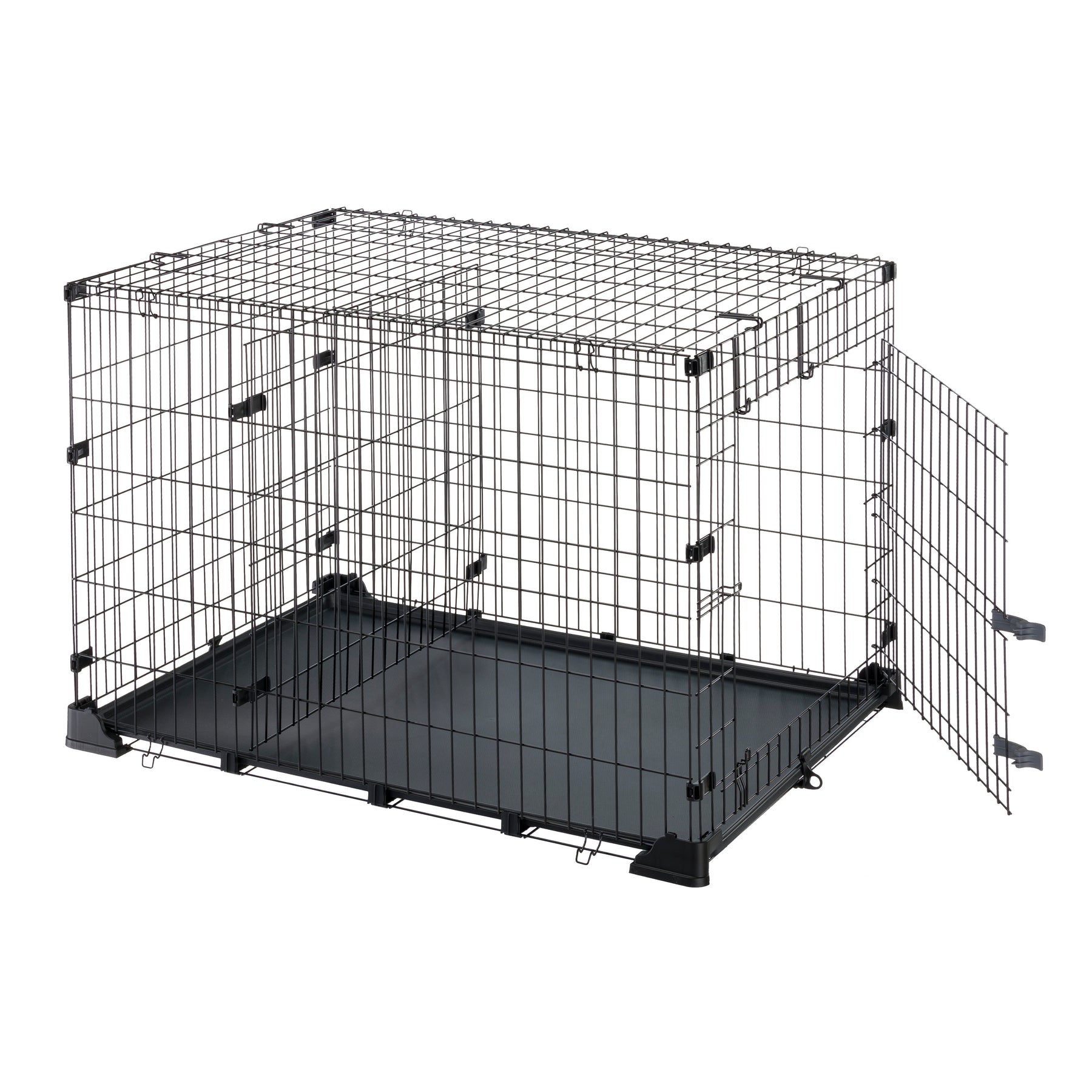 Foldable metal dog crate and indoor dog playpen, quiet and sturdy. Dog cage with divider, leak-proof tray and secure lock.