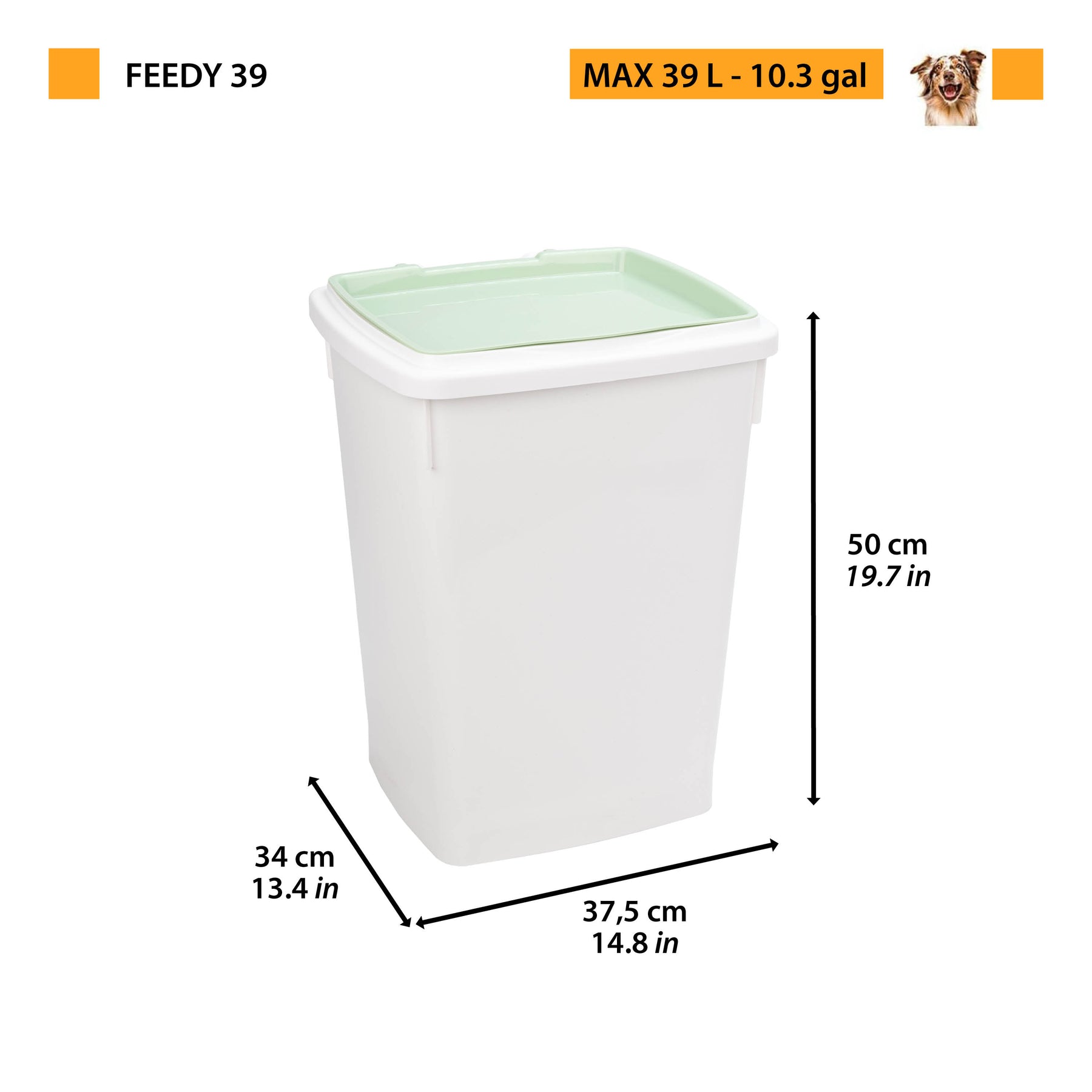 It is available in three different sizes: Feedy 13, 26 and 39, which contain, respectively, 5, 10 and 15 kg of dog food. With Feedy, you can stock up on food for long periods of time.