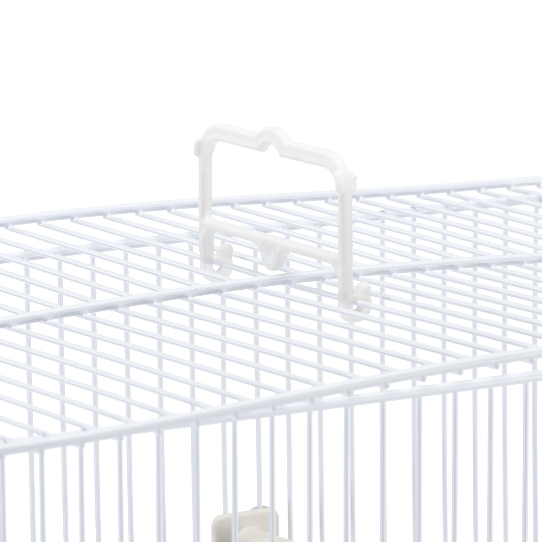Giusy is a basic, practical birdcage with a sturdy plastic base and wire mesh structure that has been varnished white. It is ideal for canaries or small exotic birds, it is comfortable and equipped with all the accessories your feathered-friend will need, including a plastic drinking bottle and perches, innovative Brava 1 swivel feeders, making it extremely easy to feed your birds from outside the cage. This birdcage is also easy to look after and will always be clean and tidy, thanks to its removable dirt-collecting tray.