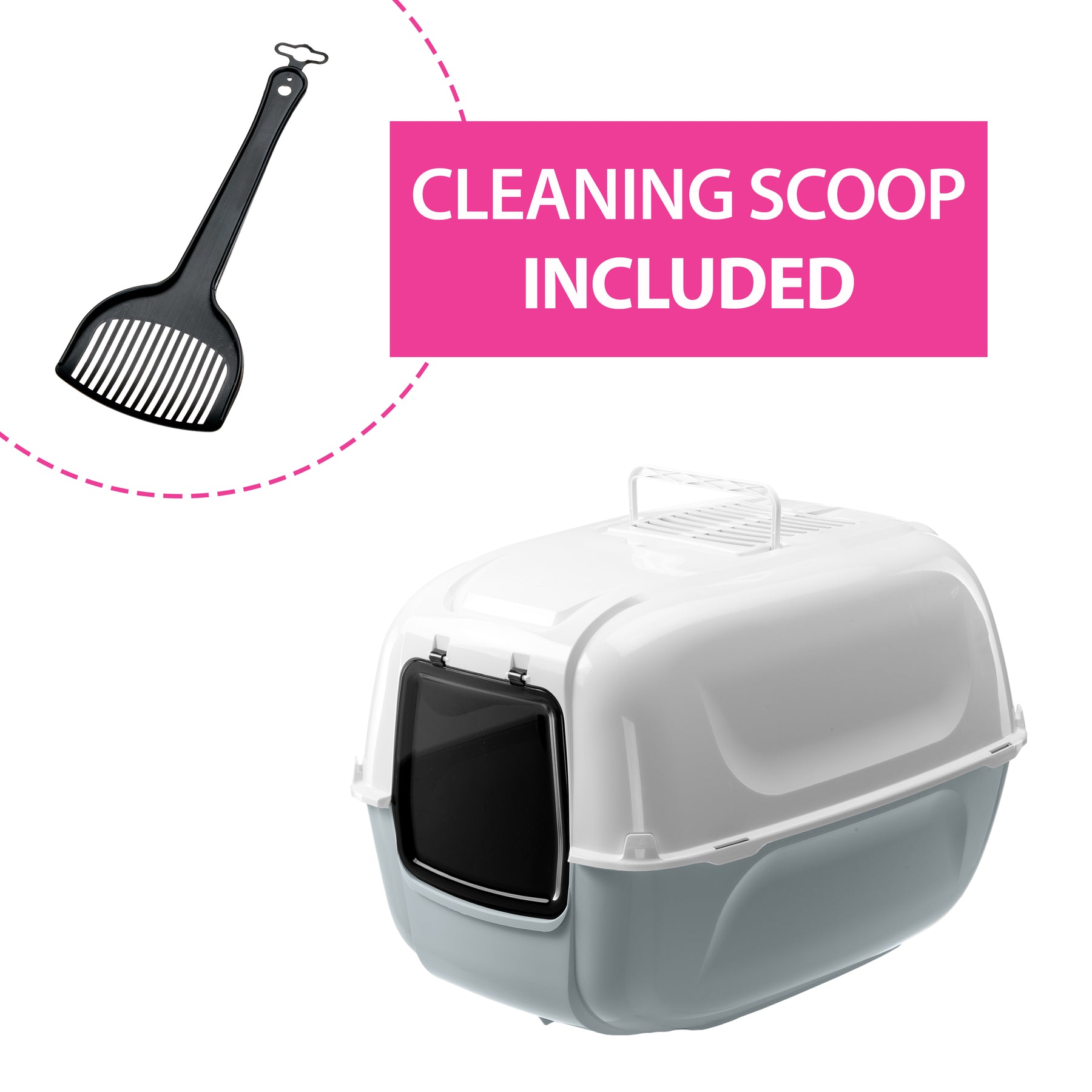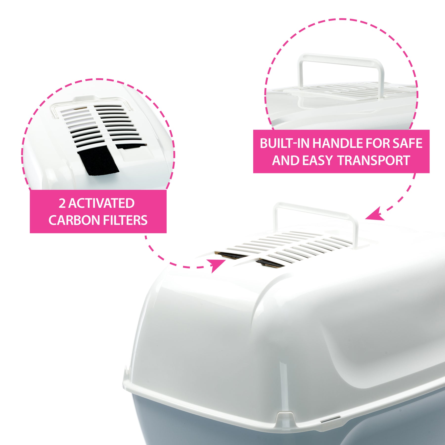 It features a dark-tinted swing door, ideal for giving your cat a sense of privacy, and activated carbon filters to help neutralize unpleasant odors.