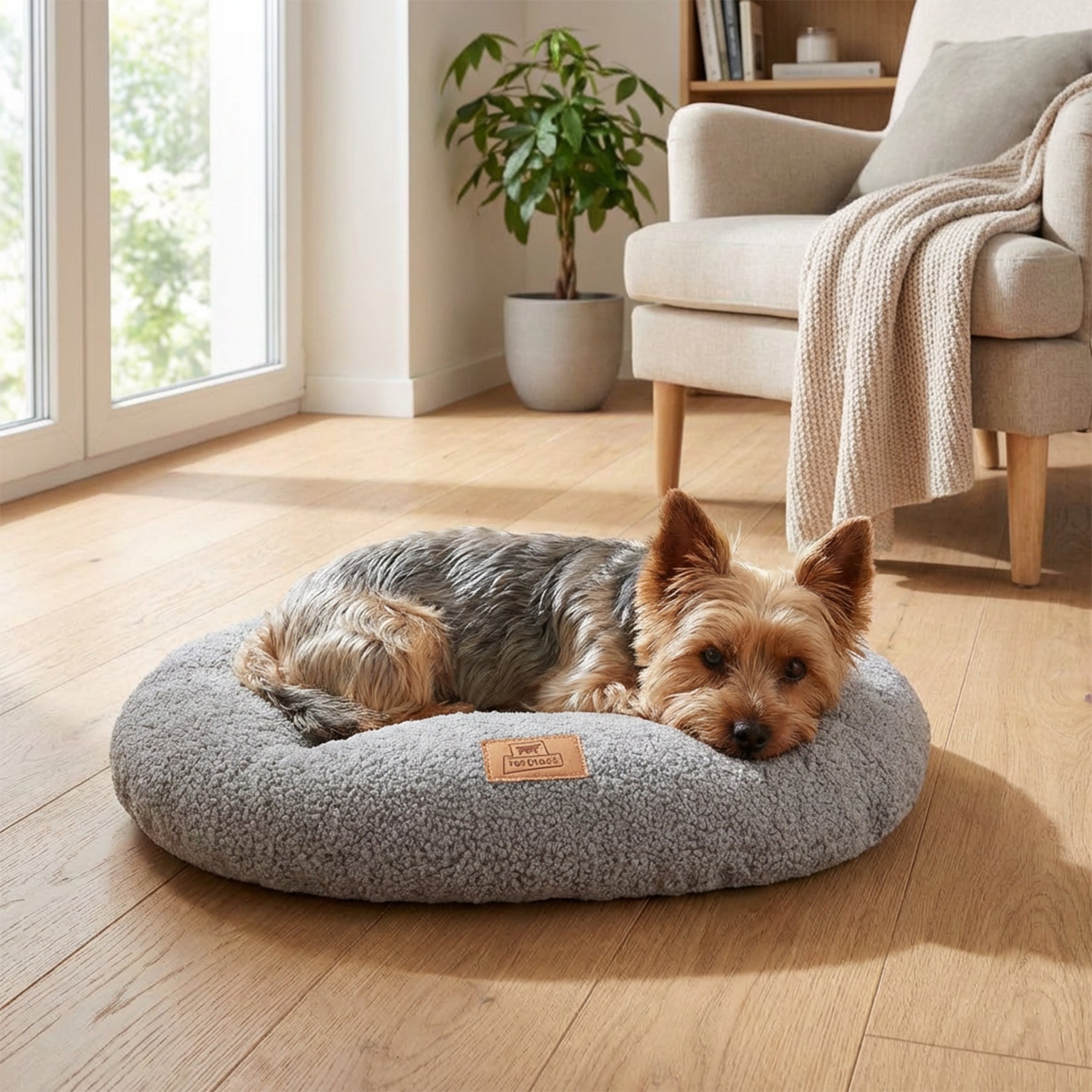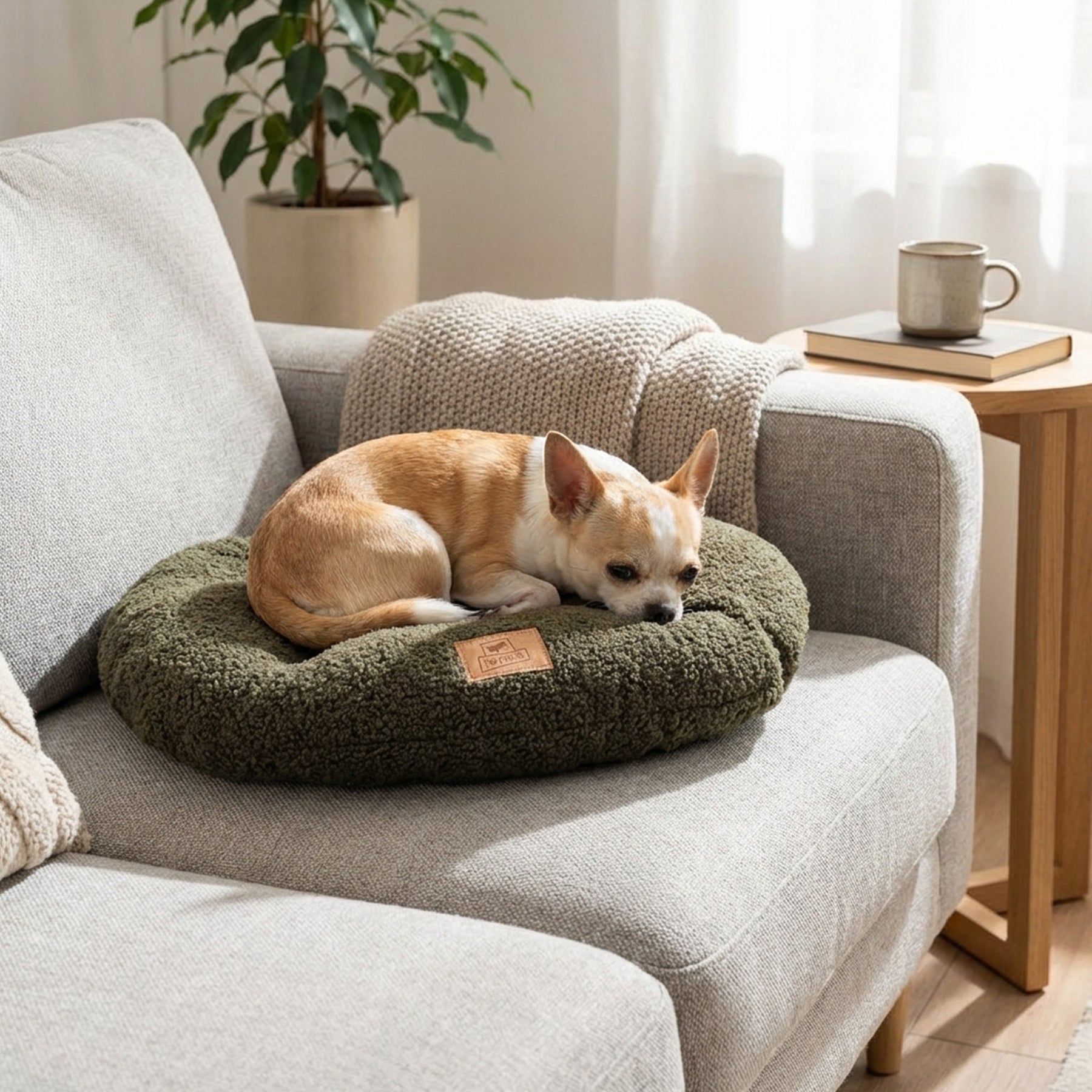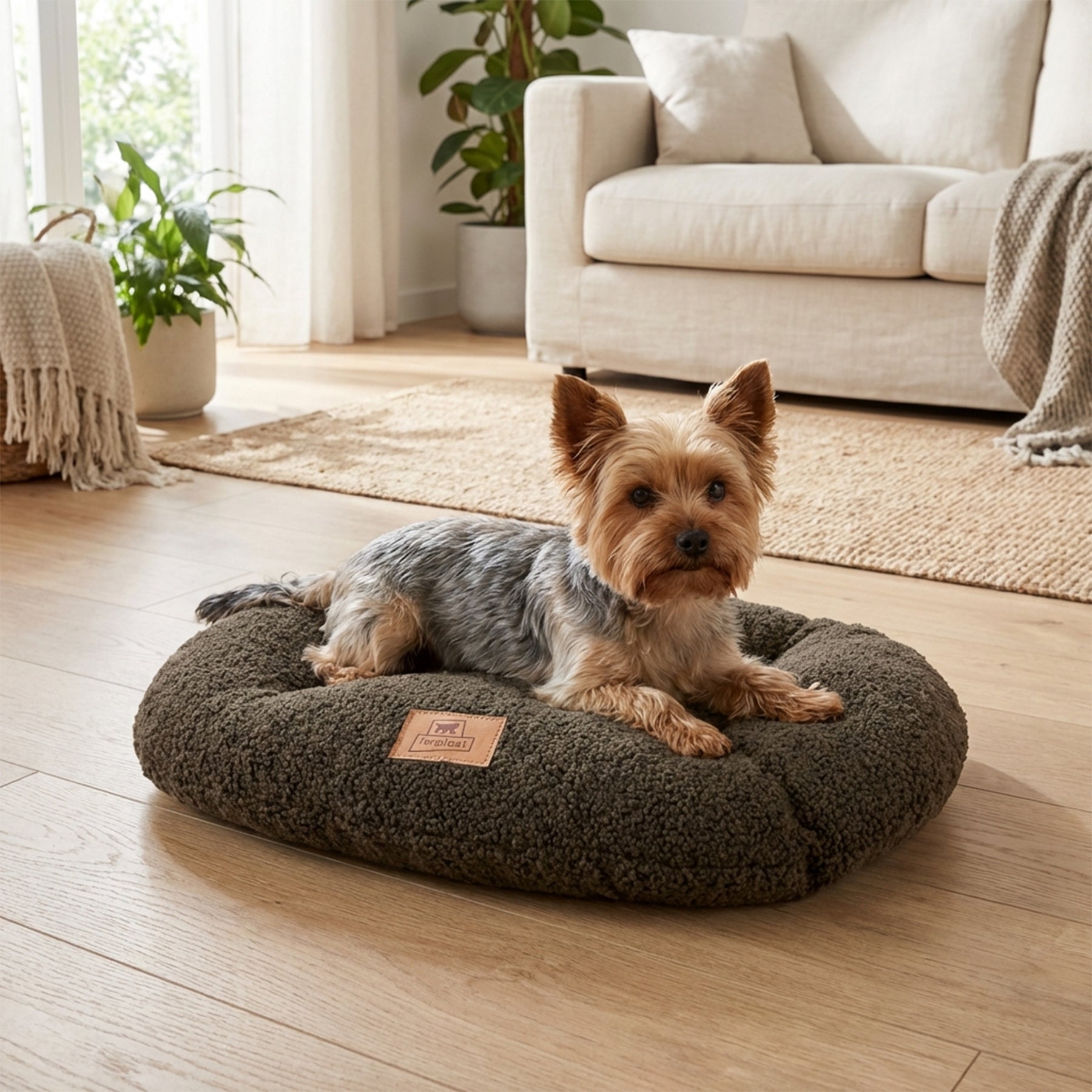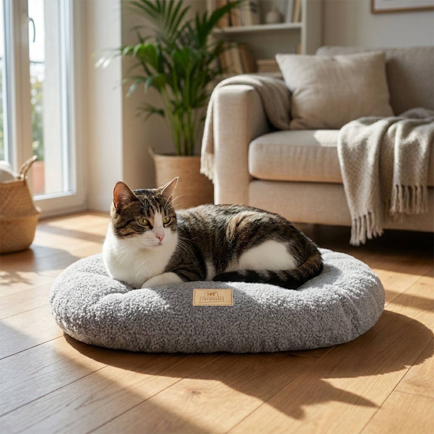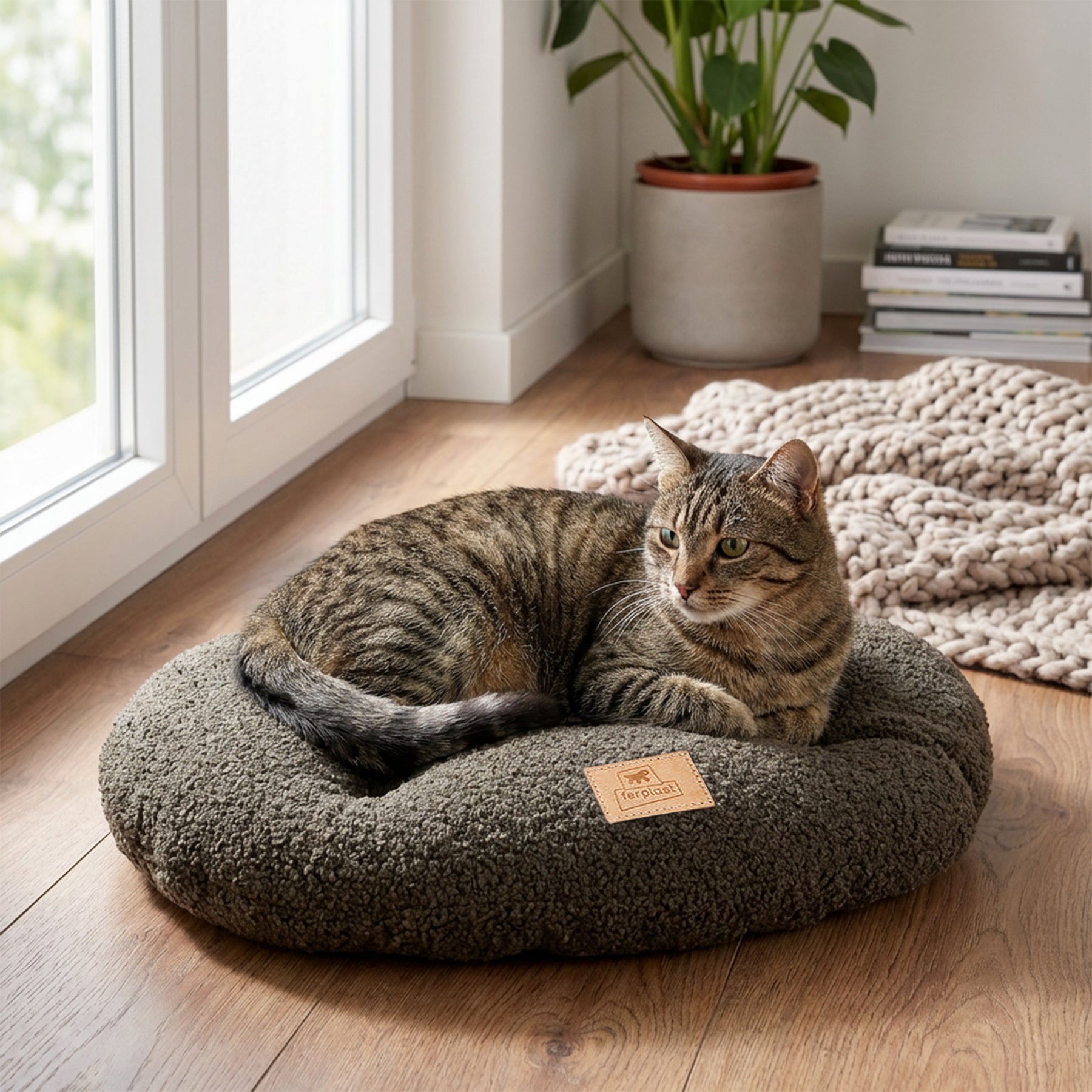 Cushion for dogs and cats in soft faux-bouclé fabric, elegant and cozy, with internal padding