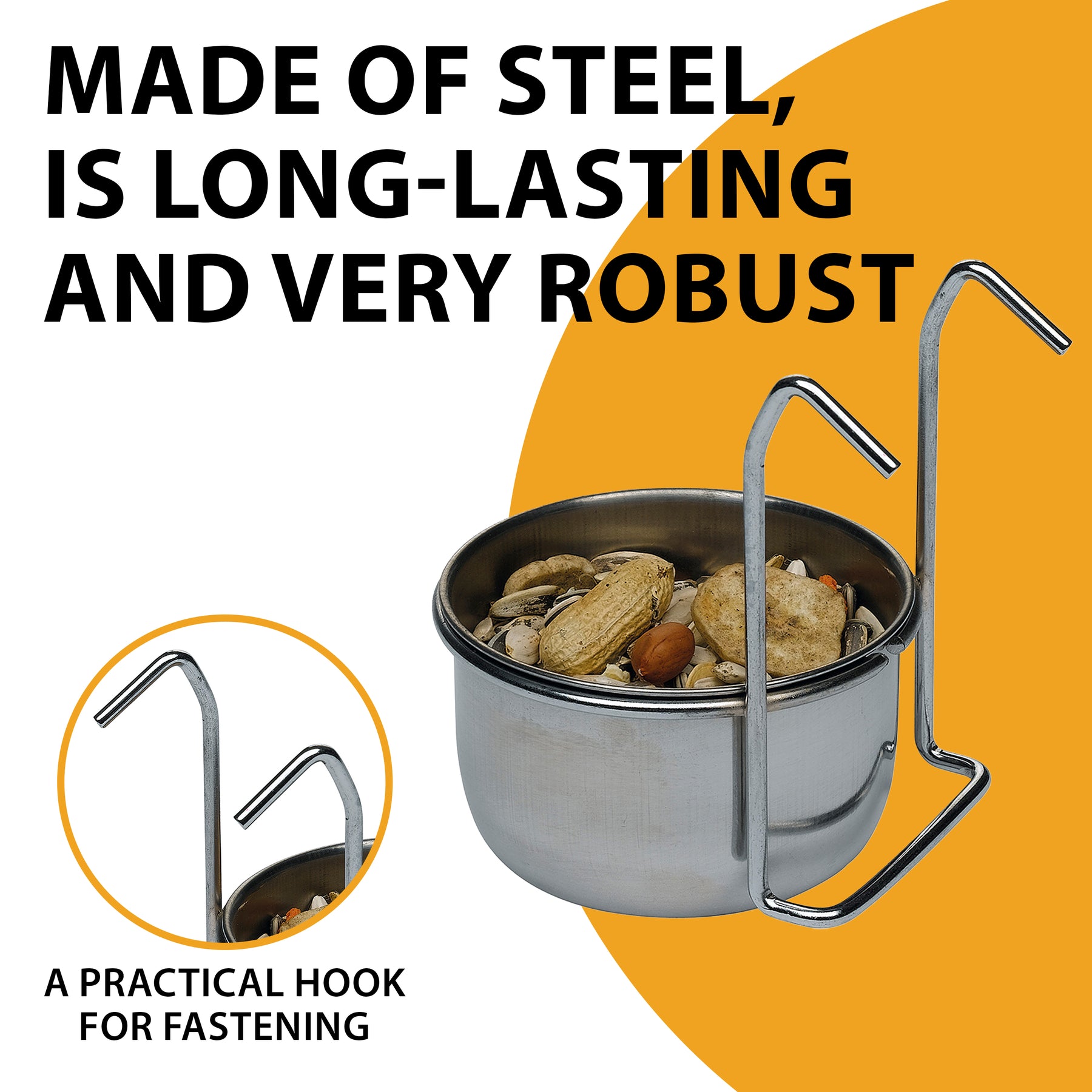 Parrot feeder, made of steel. Capacity from 0,3 to 0,8 L.
