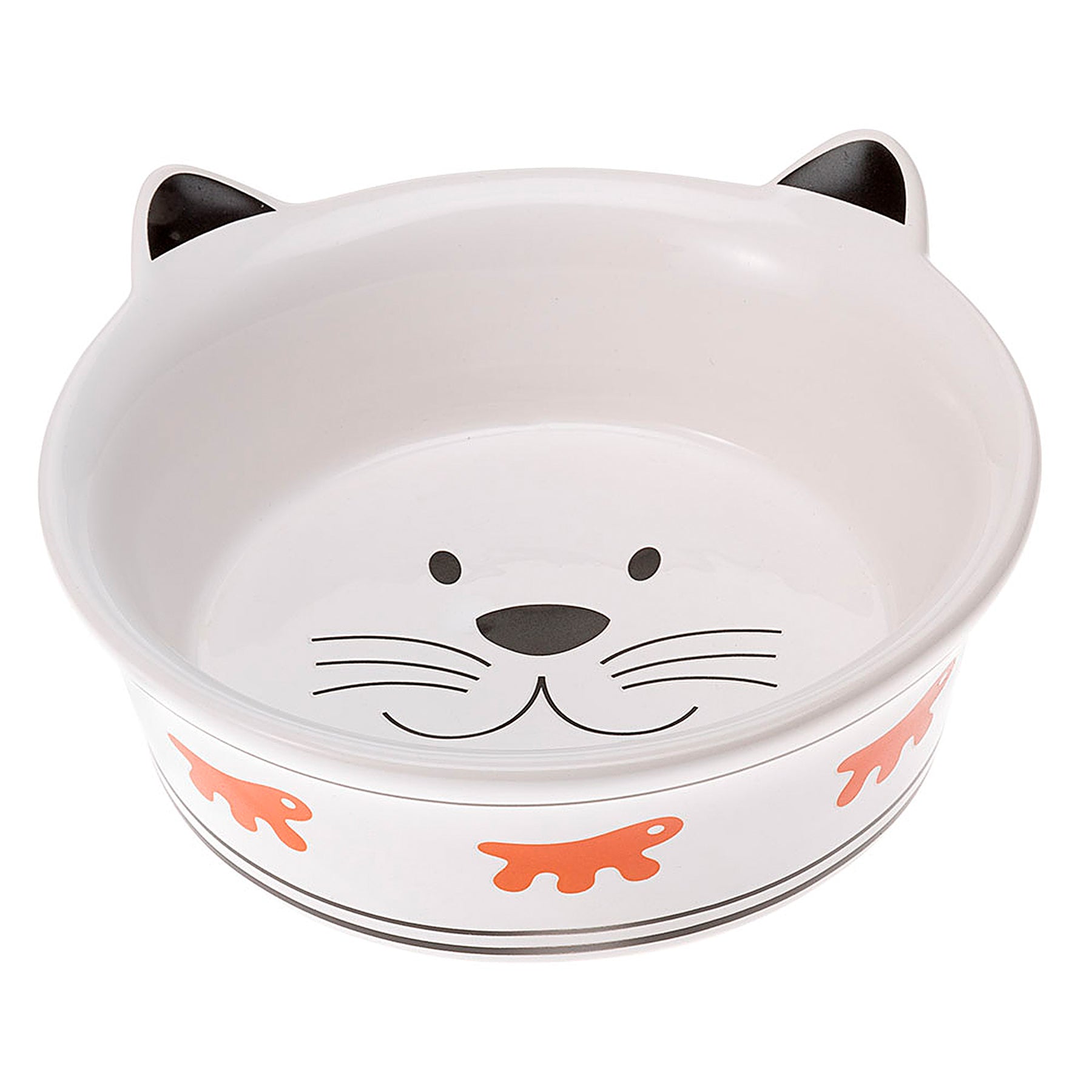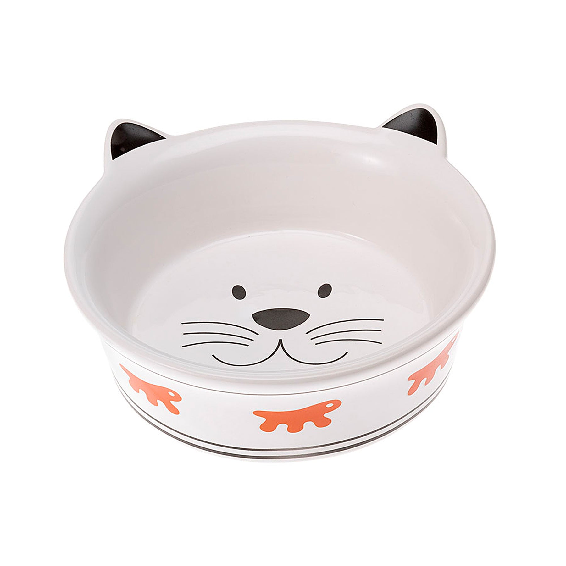 The Venere cat feeding bowl is made of nicely finished glazed ceramics. Its shape and decorations are undoubtedly original and remind you of a cat's face.